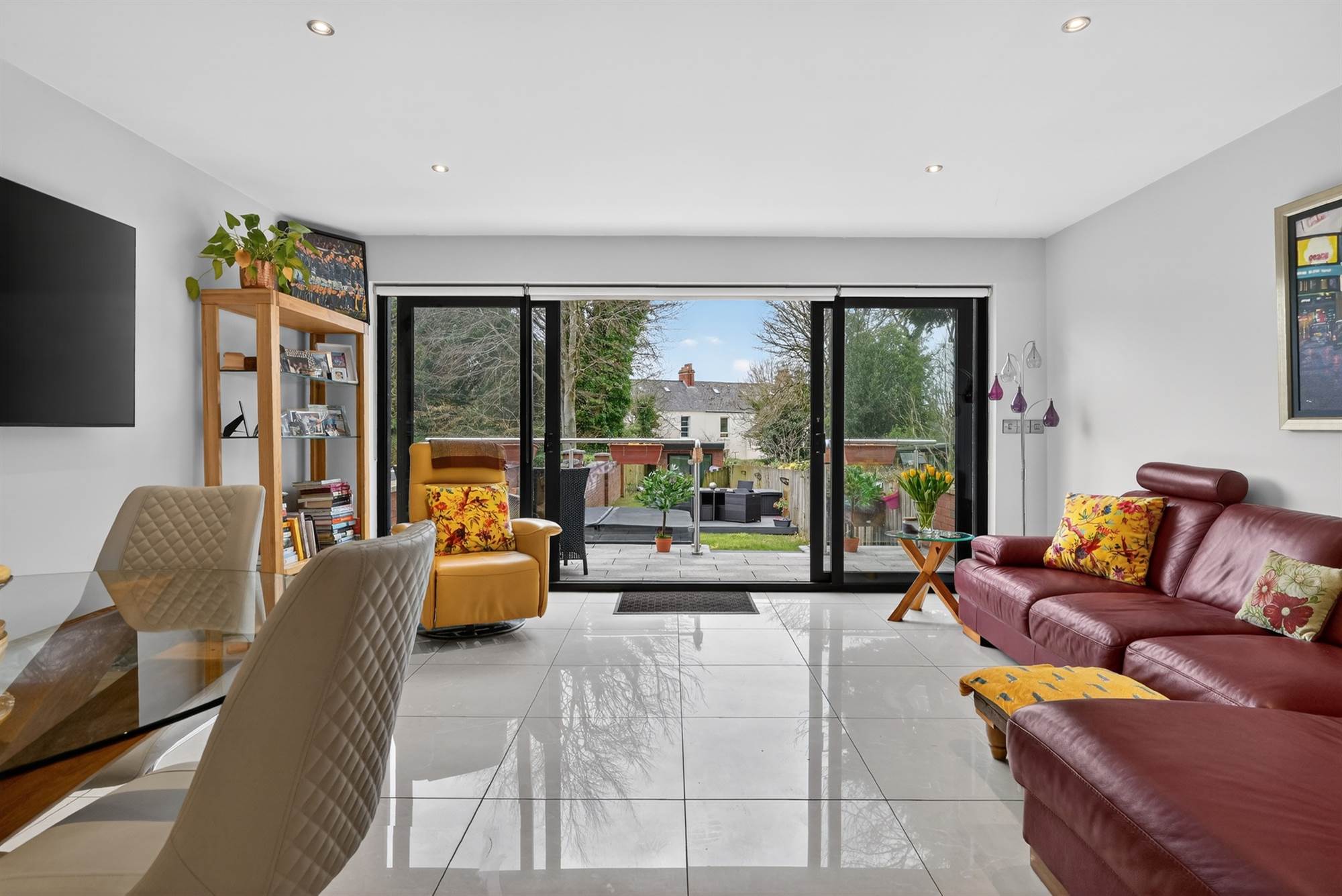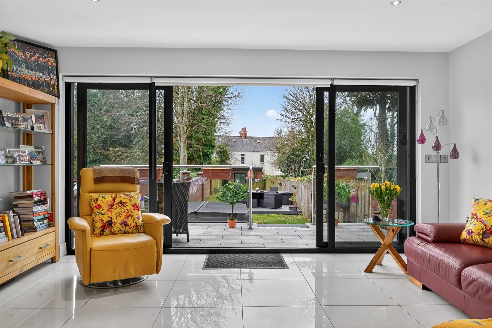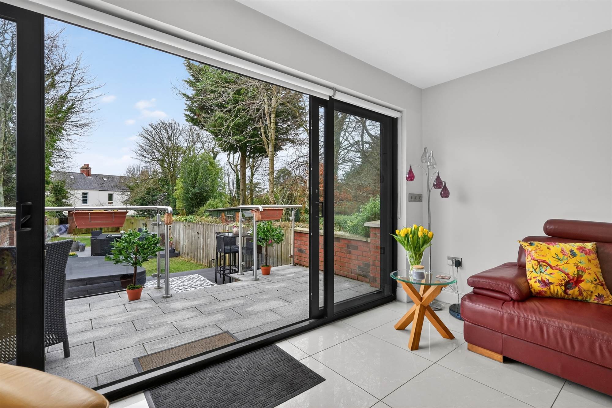 Powder coated aluminium frame glazed sliding doors to rear
