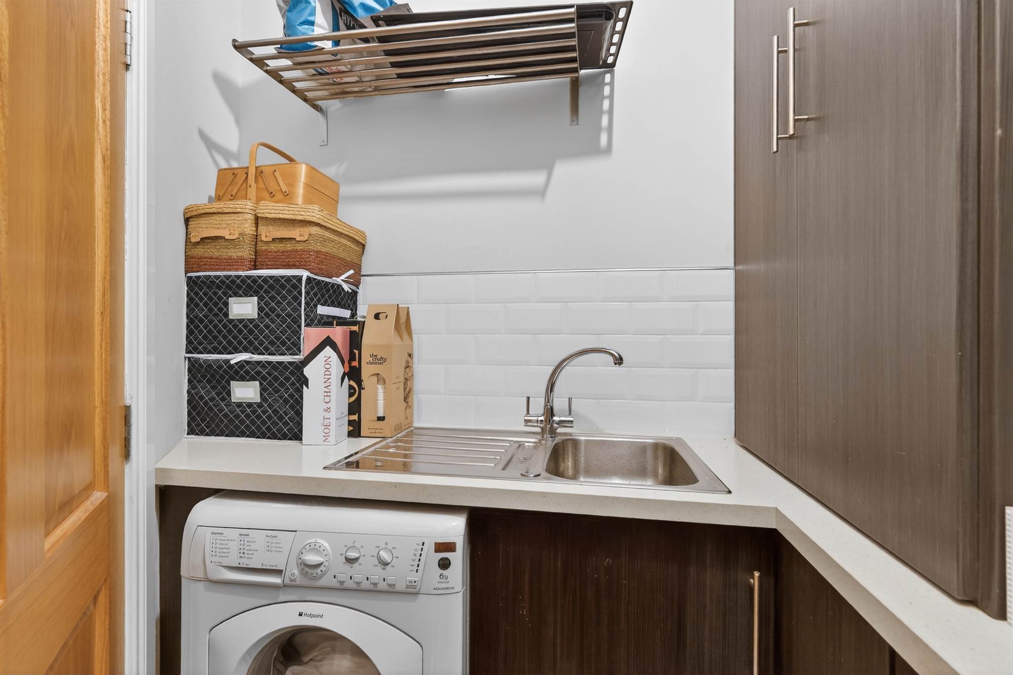 Stainless steel with drainer and mixer tap, built-in units, plumbed for washing machine, subway tiling, ceramic tiled floor, Worcester gas fired boiler.