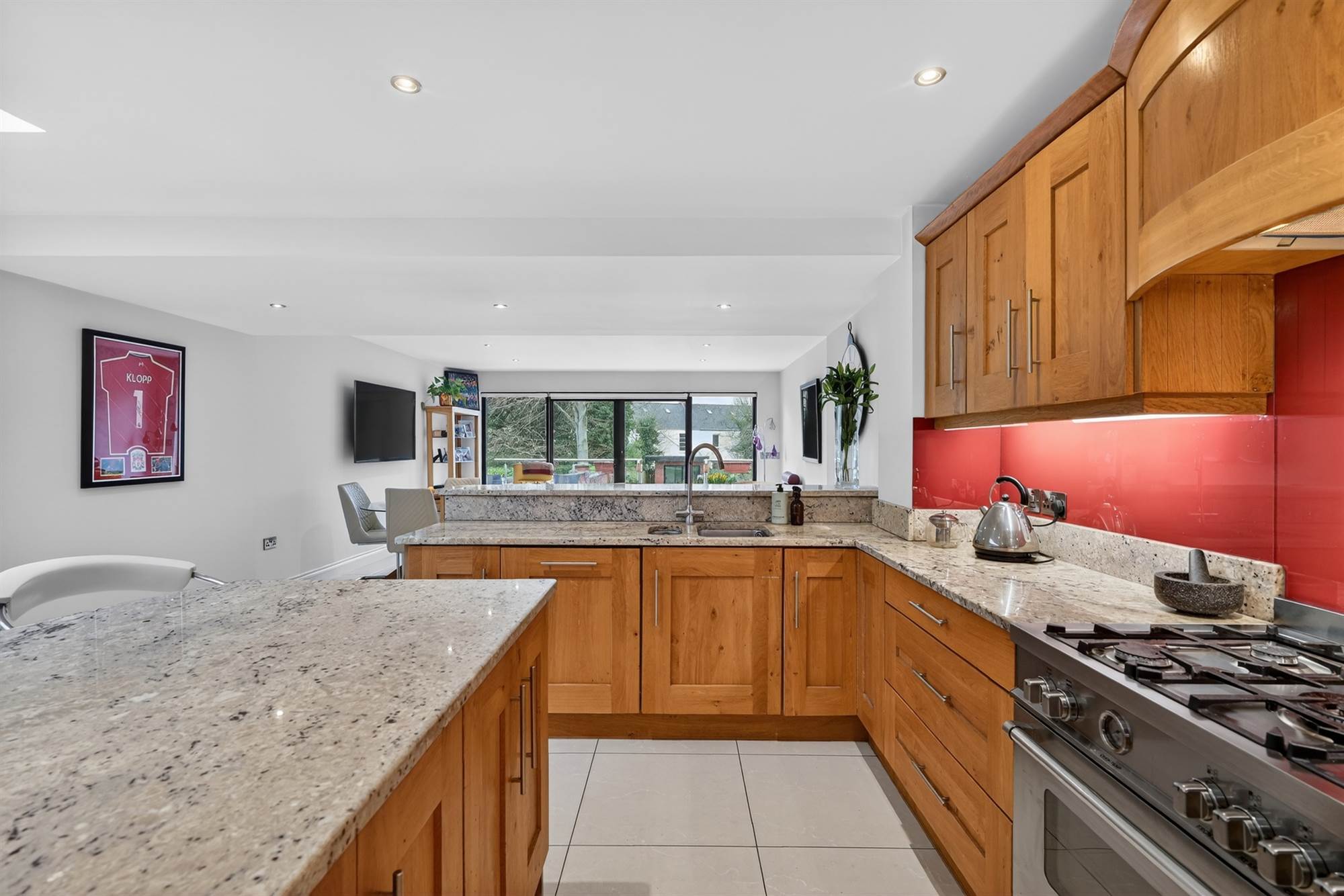 (Bespoke oak kitchen with island & range of appliances), direct access to exterior raised patio