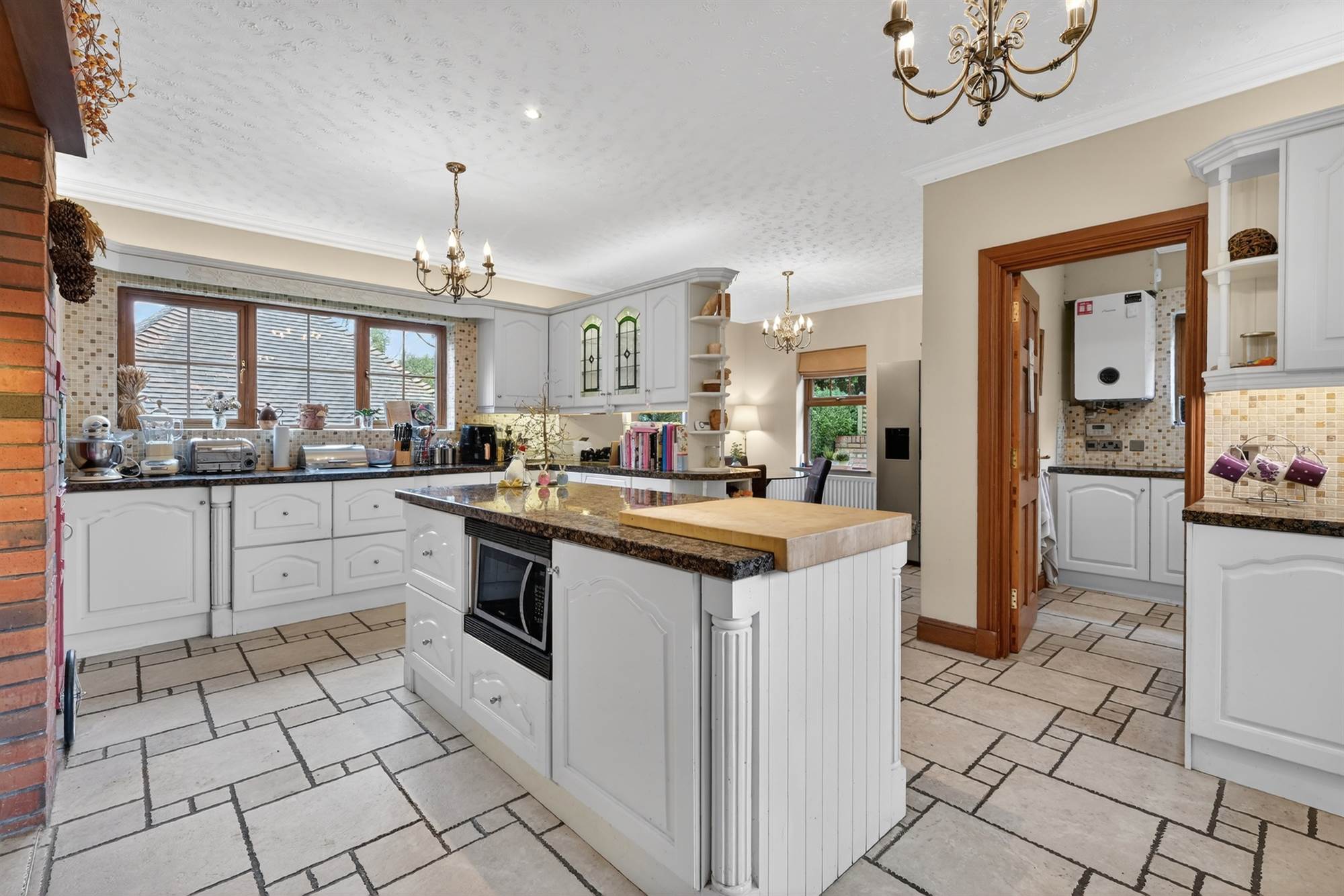 Excellent range of high and low level units with granite worktops, twin bowl Belfast sink unit with mixer tap, Aga cooker, Masterchef four ring gas hob with hotplate and ovens, kitchen island with granite worktop, ceramic tiled floor.