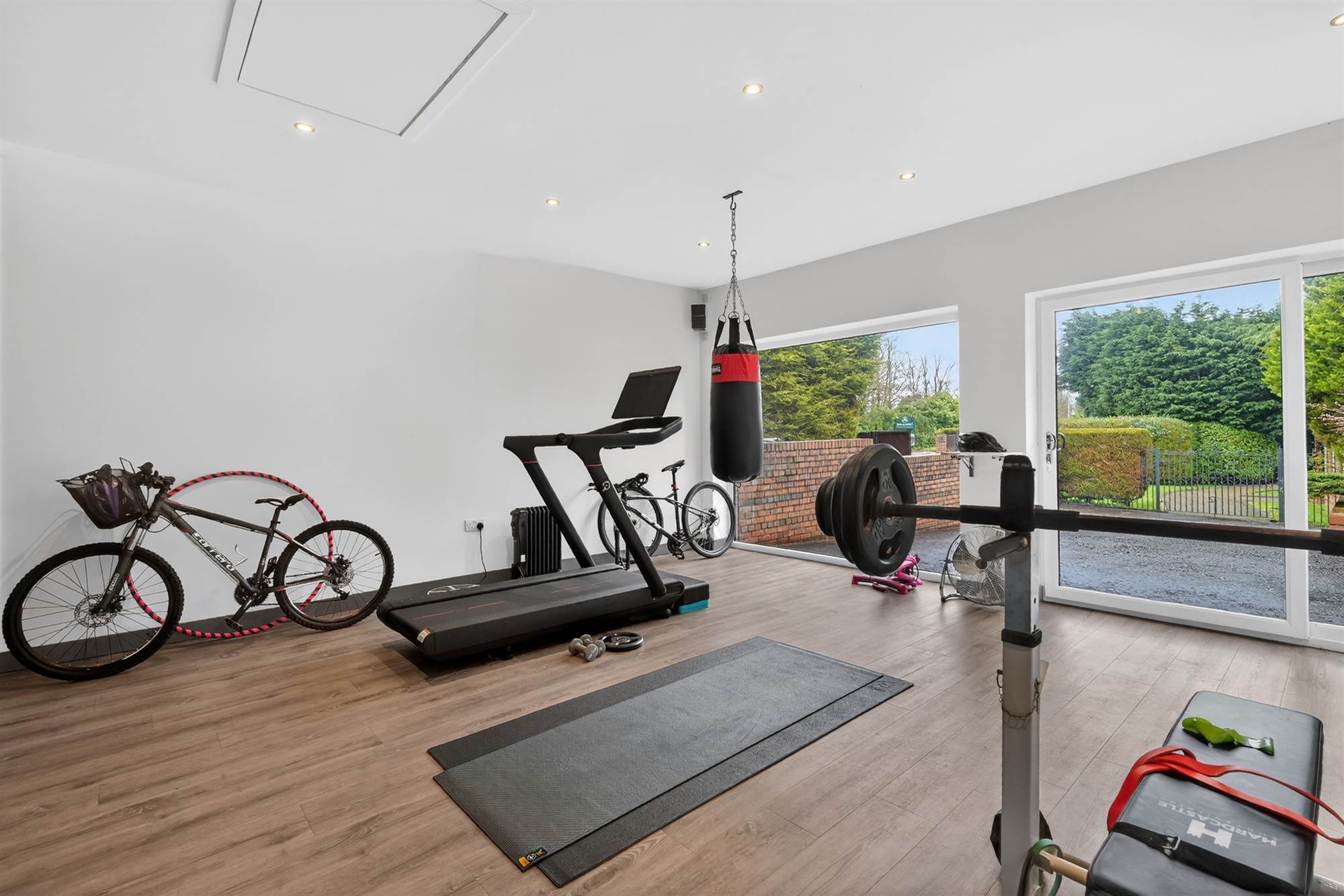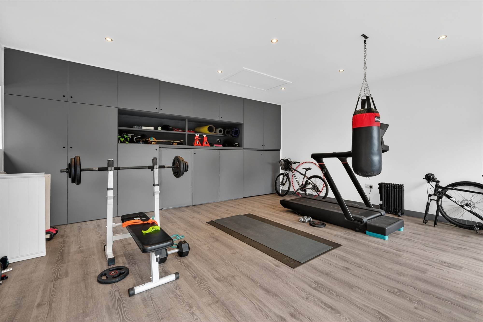 Currently used as a gym, ideal for home office, range of built-in cupboards.