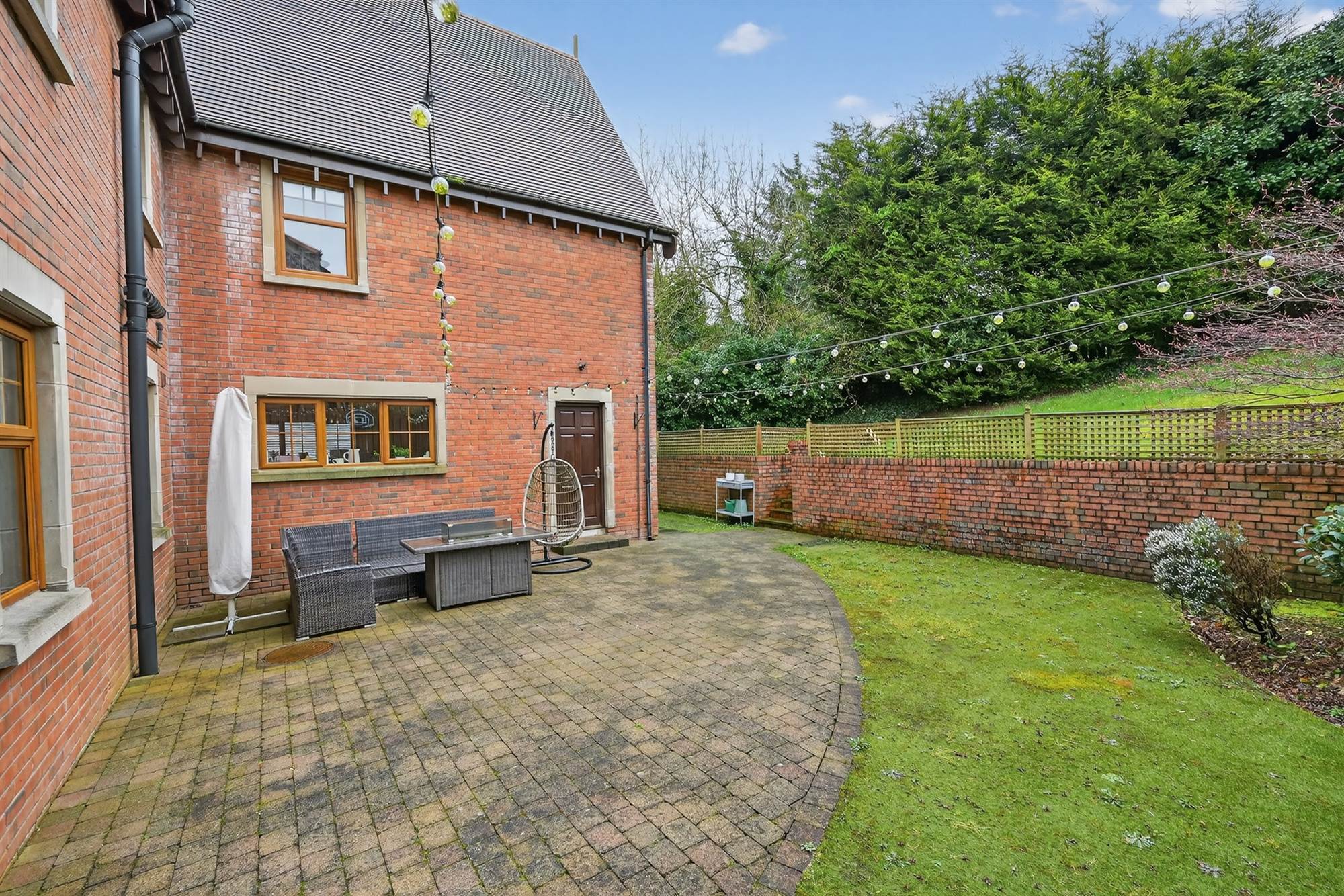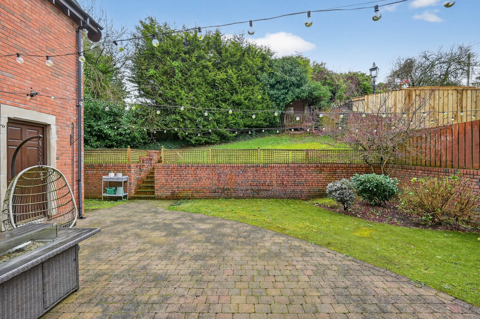 Enclosed low maintenance rear garden in lawn and large paved patio.