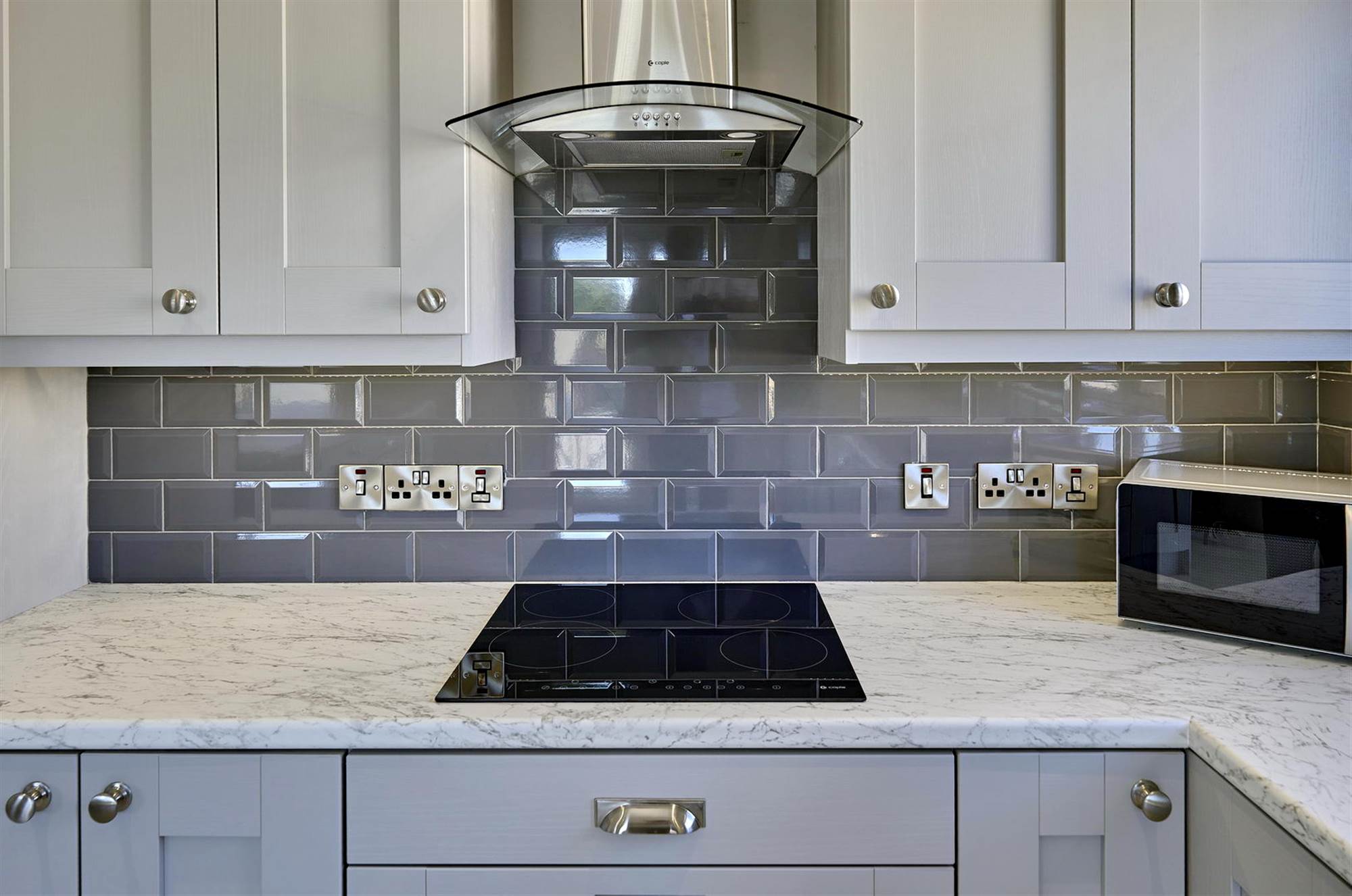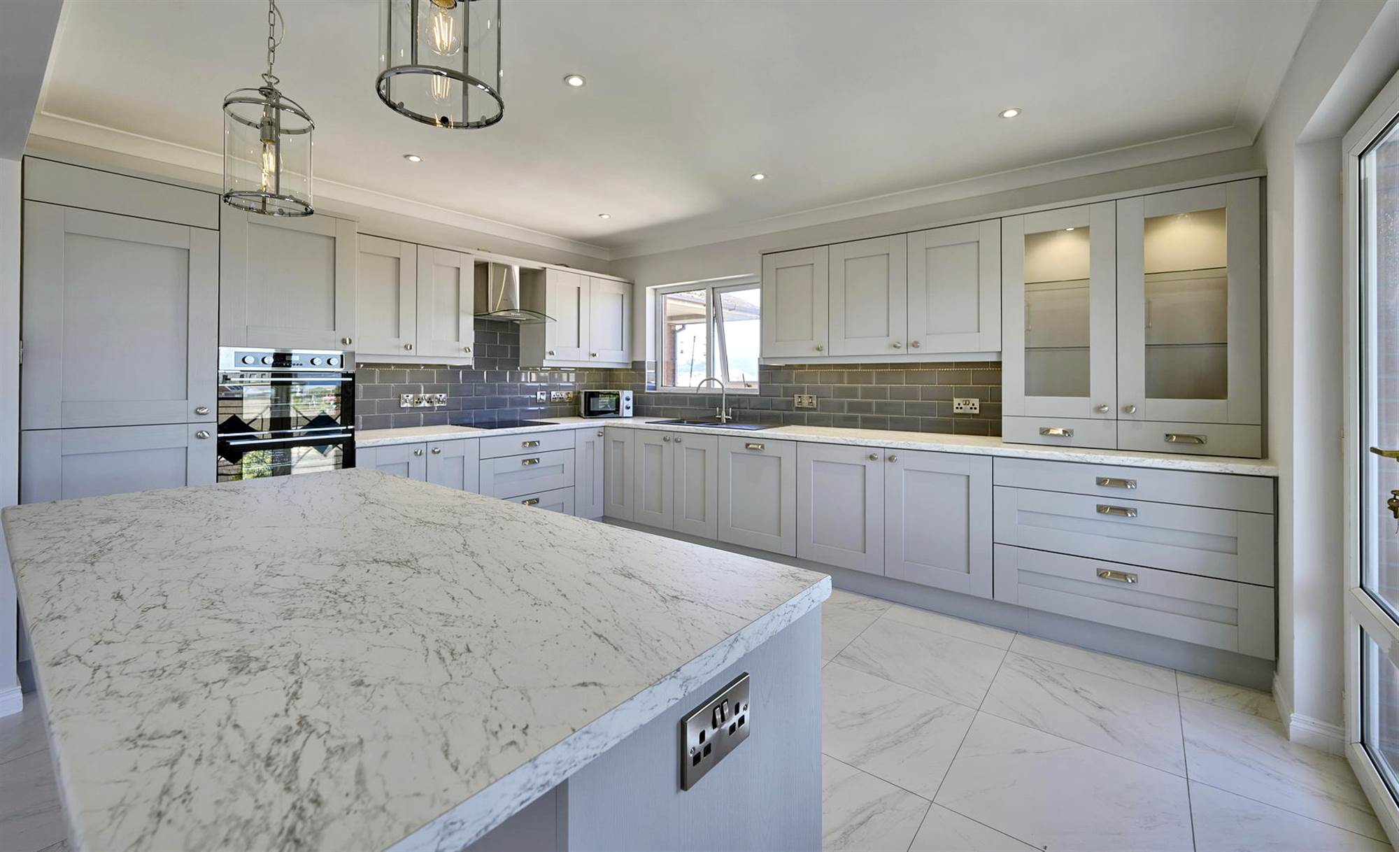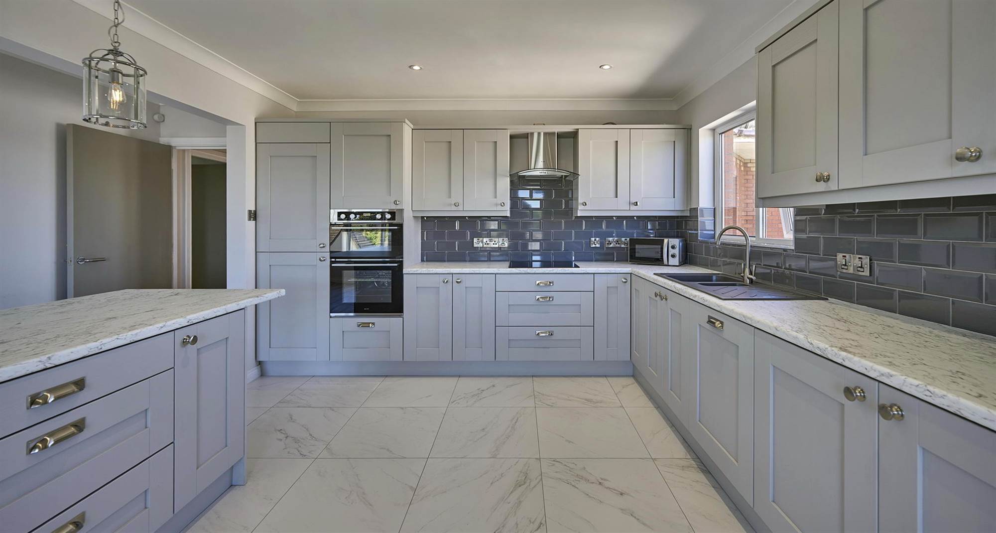 Newly refurbished modern kitchen, with intregrated fridge freezer, dishwasher, hob, oven and grill. Island unit with space for 4 seats.