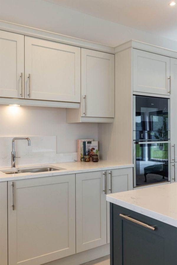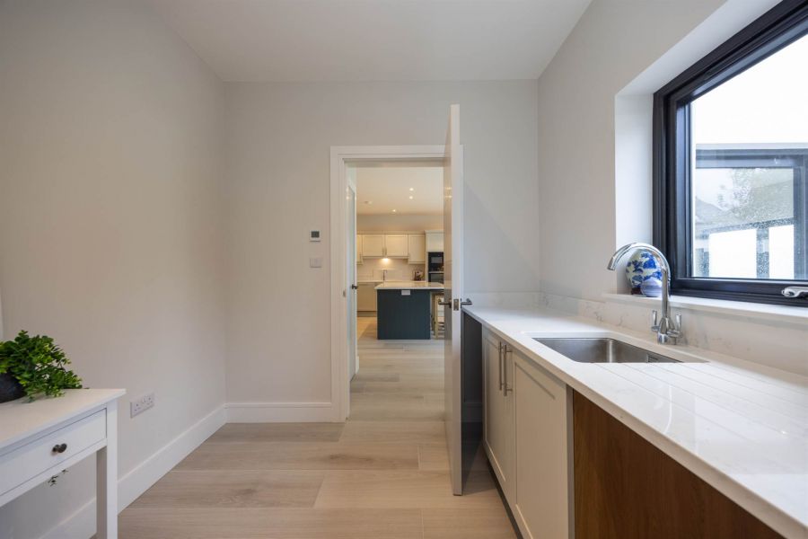 Bespoke luxury kitchen with integrated appliances and adjoining utility room