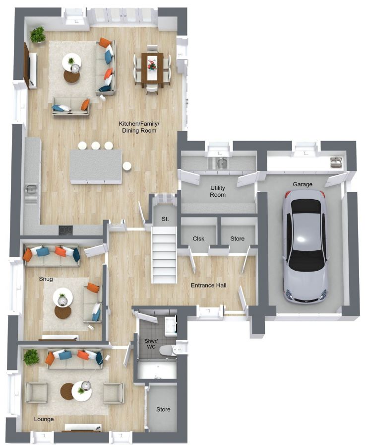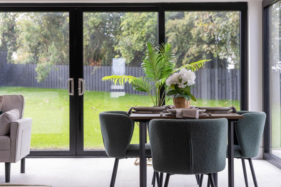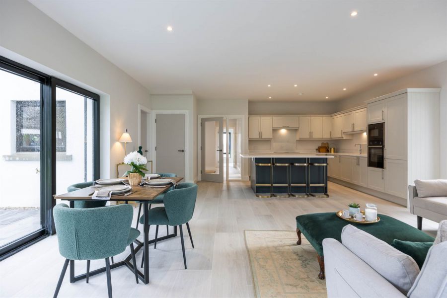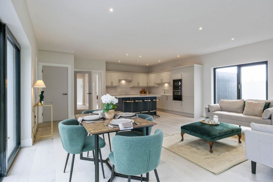 This four-bedroom detached family home has been thoughtfully designed with everyday living in mind. A bright and spacious open plan kitchen, living and dining room forms the heart of the home, complete with a superb fitted kitchen featuring integrated appliances and large sliding doors that open out to the garden - ideal for entertaining or simply enjoying the rural views. A separate utility room adjoins the kitchen and provides internal access to the garage.