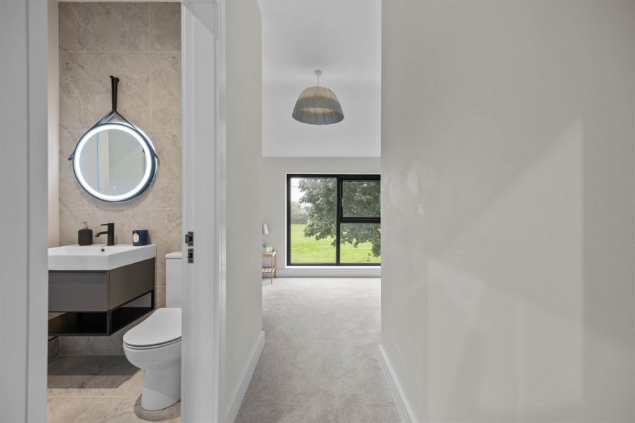 Upstairs, the primary bedroom suite takes full advantage of the countryside setting, with far-reaching views, a dedicated dressing room and a luxury ensuite. Each of the three further bedrooms also benefits from its own ensuite shower room, providing comfort and privacy for every member of the household.