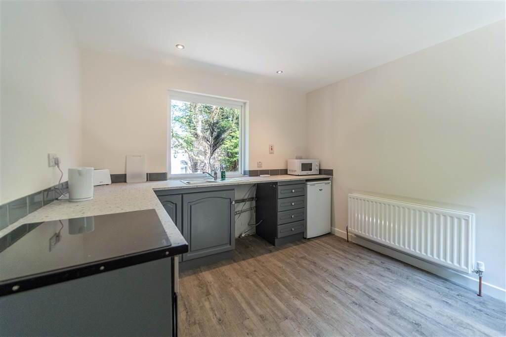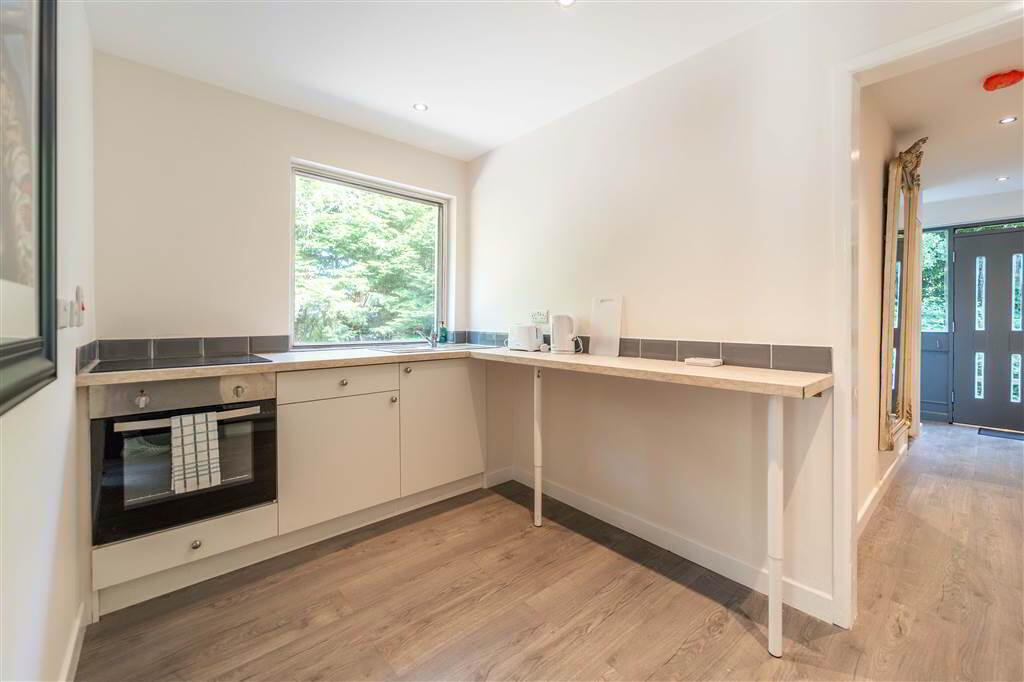 - 3.56m x 3.12m (11' 8" x 10' 3")Fitted Kitchen with a range of low-level units with complimentary Worktops, Tiled Upstands, a Stainless-Steel Sink and Drainer Unit and an integrated Four Ring Ceramic Hob with Oven under. Complete with Laminate Wooden Flooring, recessed Spotlights, space for a Tumble-dryer / Washing Machine and access to the rear via a Wood and Glazed Door.