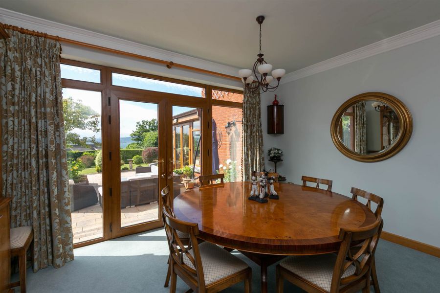 Double glazed doors with glazed side panels opening to rear terraces with views over Belfast Lough.