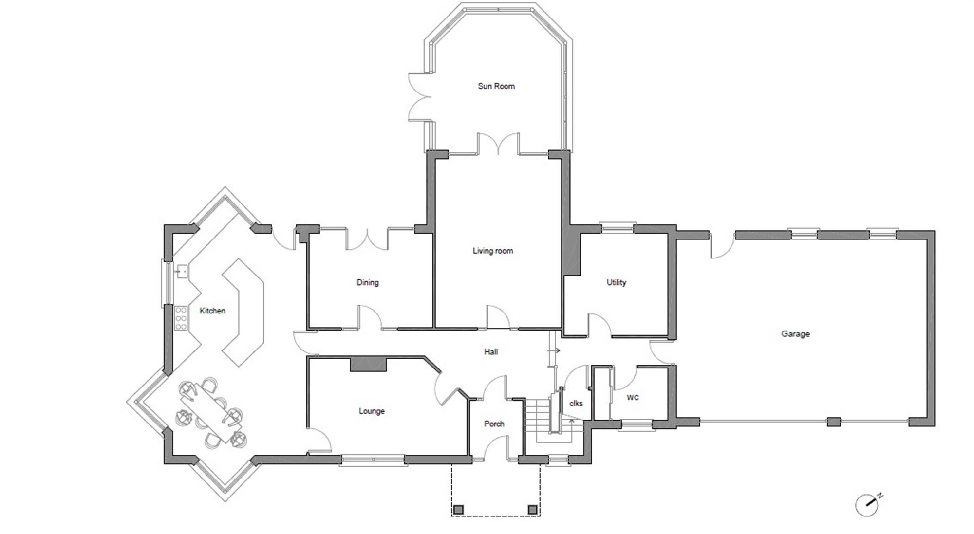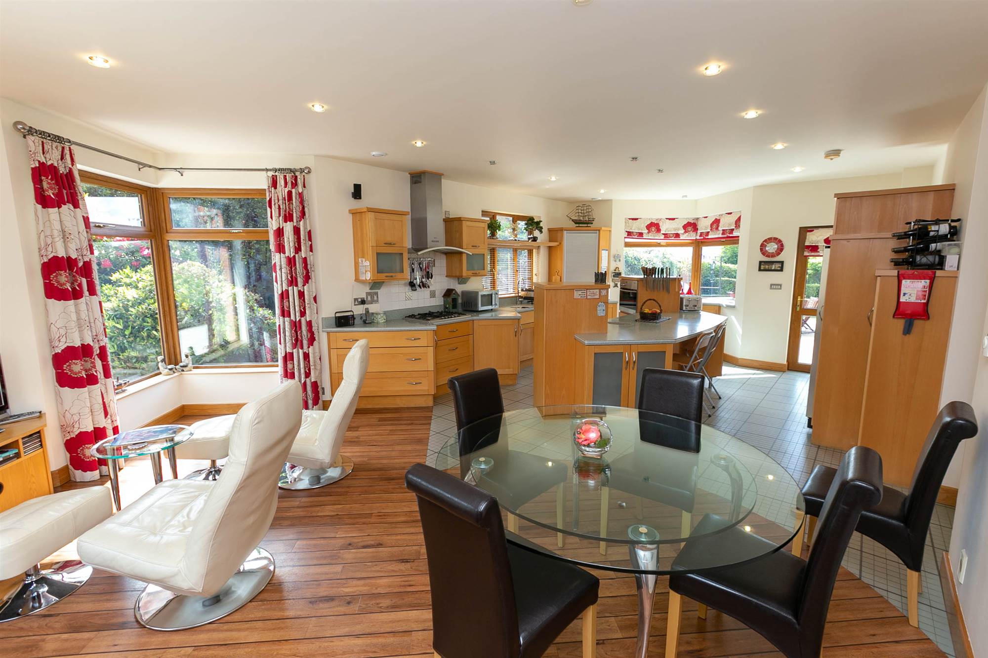 Living Kitchen Dining room with casual dining area, island unit doors to front sun terrace and door to rear terraces and gardens