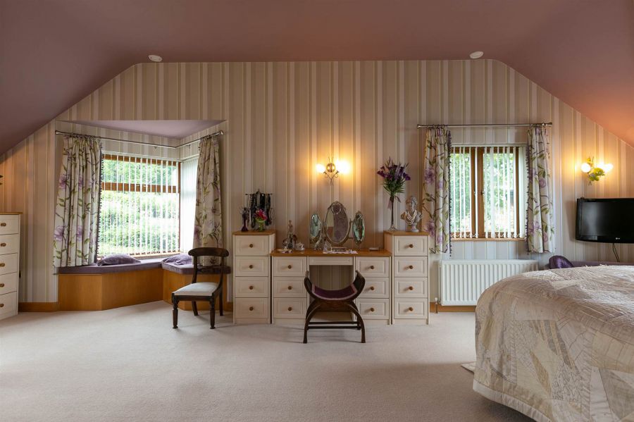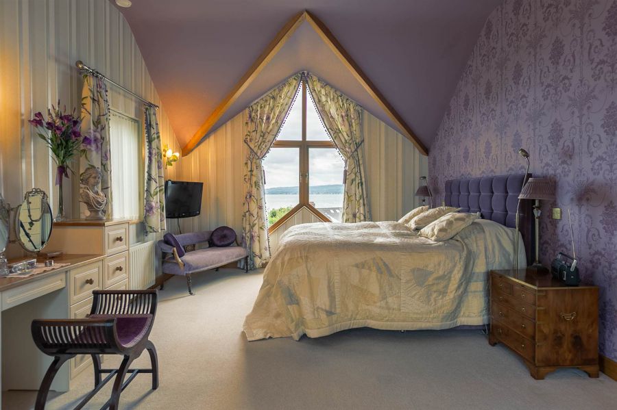 Large principal bedroom suite with full dressing room and shower room overlooking Lough
