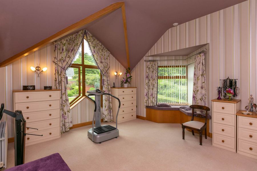 Eaves ceiling, built in double wardrobes, beautiful panoramic views. Fully tiled shower room, low flush WC, corner shower cubicle, pedestal wash hand basin, extractor fan.