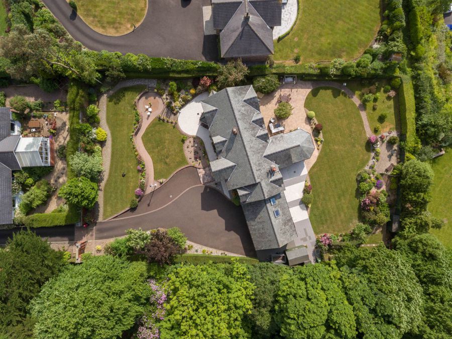 A substantial detached family home set on a private, elevated and mature site of c.0.5 acres in an exclusive road in Cultra.