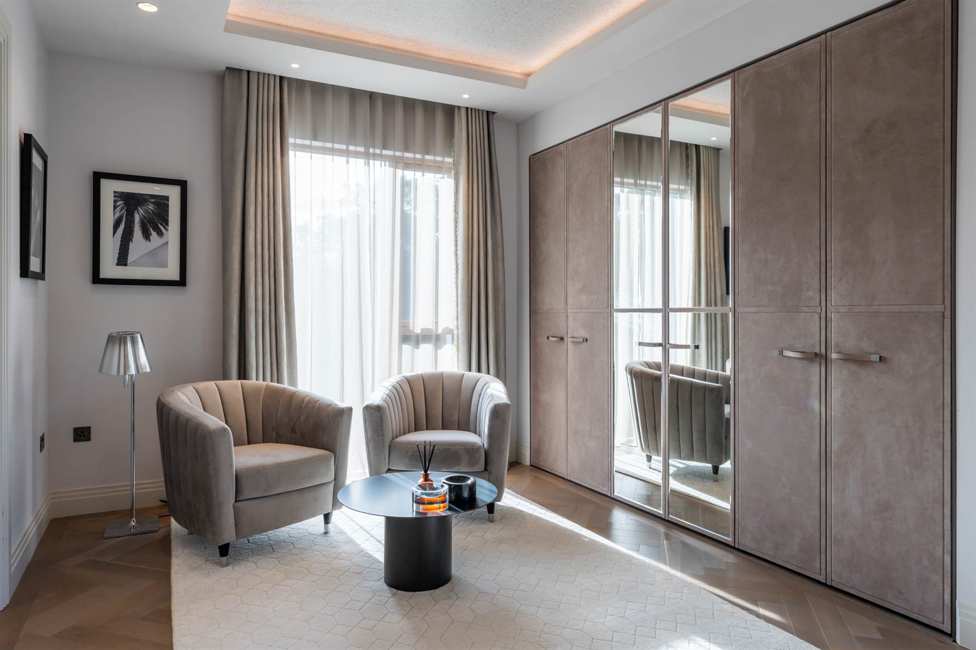 The lower ground floor has a pilates studio & gymnasium with crittall walls for natural light and wired for a speaker system. This lower floor also has 2 fantastic large bedroom suites with recessed ceilings, one with dressing area and vanity unit, both incorporating built in wardrobes and designer bathrooms. Finally there is a cinema room, wired for surround sound so all can enjoy movies, Netflix or sports at their leisure.