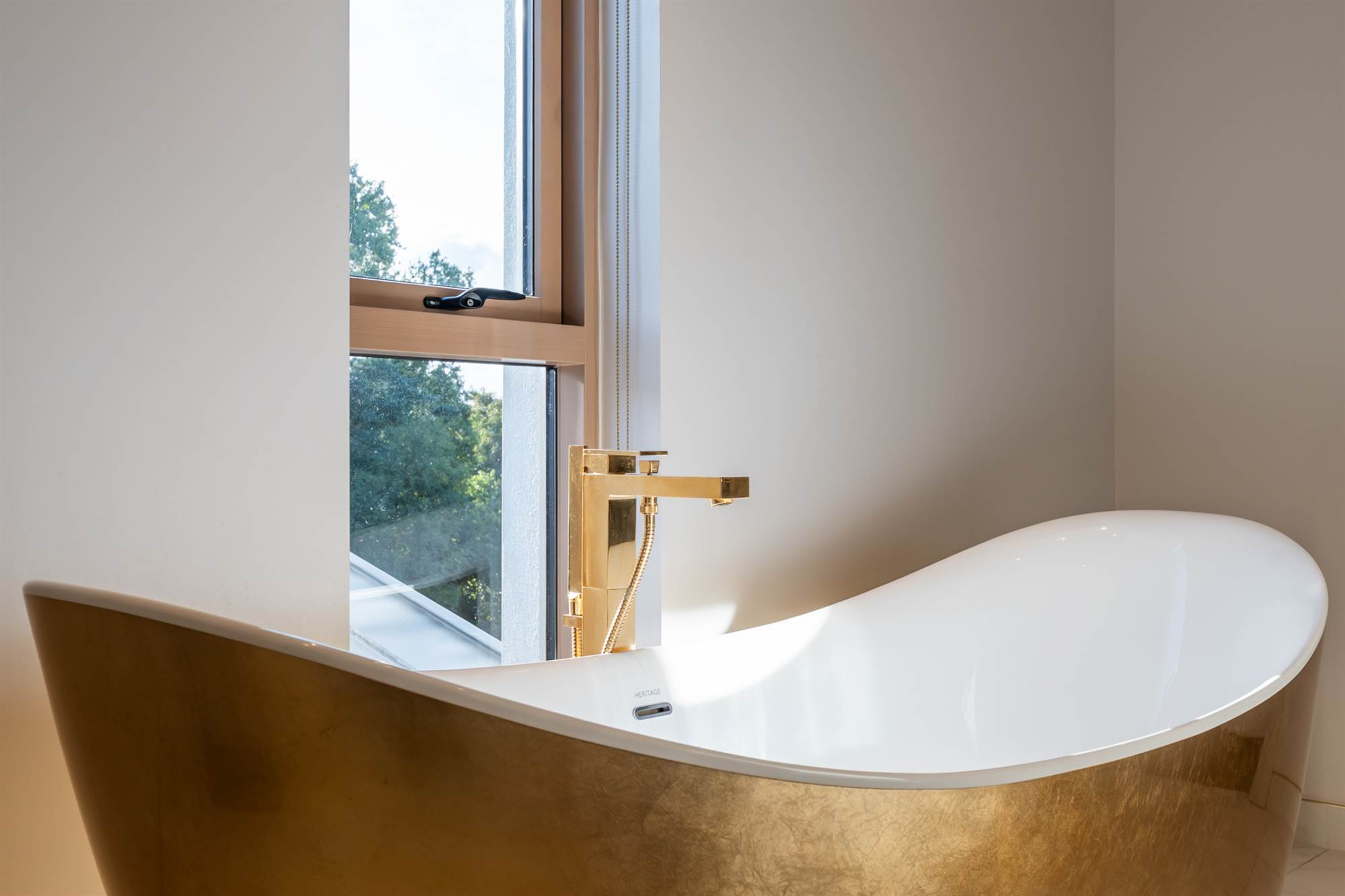 On the first floor there is a marvellous principal suite with the bedroom area with stunning picture window overlooking mature trees to Belfast Lough, a dressing and chill out area leading to a designer bathroom with wet room shower area, deep fill free standing bath, stone double sinks and marble detailing. The bathroom leads to a formal dressing room which could also be used as a nursery or the 5th bedroom.