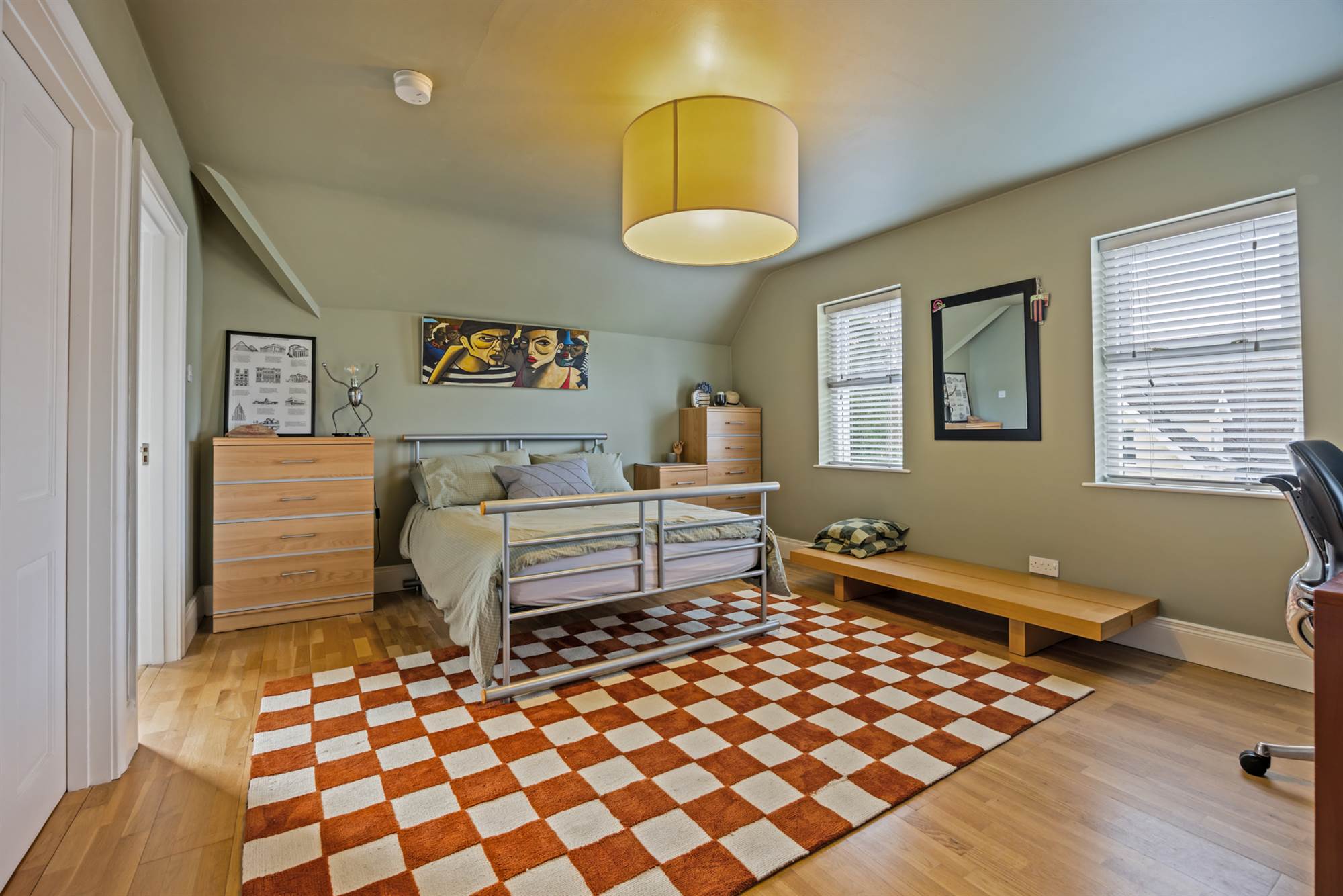 Coved ceiling, two windows in gable and dormer window looking out towards front of the property. Leading to: