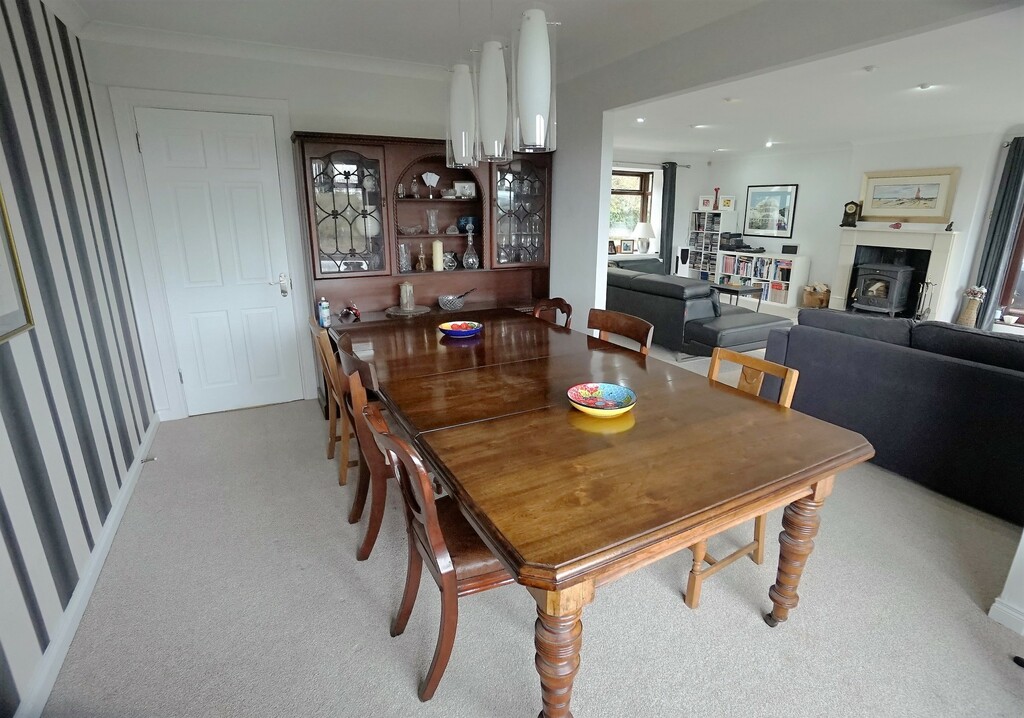Internally the property comprises of, on the ground floor, large entrance hallway, extensive lounge with oriel apex window, wood burning stove and double doors out to raised decked sun terrace to take in the fabulous views, formal dining room and large modern fitted kitchen with casual dining area. The property also benefits from utility room, cloakroom and bathroom on this floor.