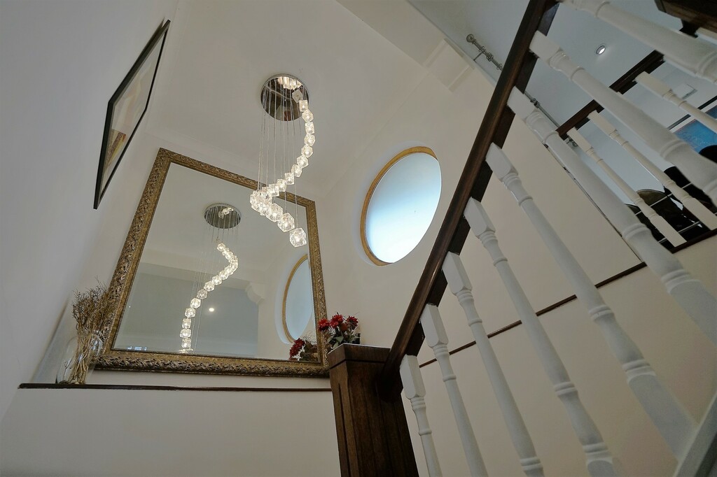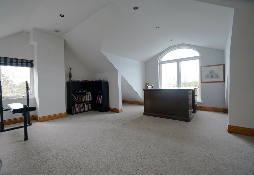 The lower floor comprises of four double bedrooms, the master bedroom with oriel apex window overlooking the garden, twin walk in robes and master bathroom, office, and family bathroom. Bedroom five/teenagers suite is on the top floor with games room/study area, which would be equally suitable for a cinema room or living room.