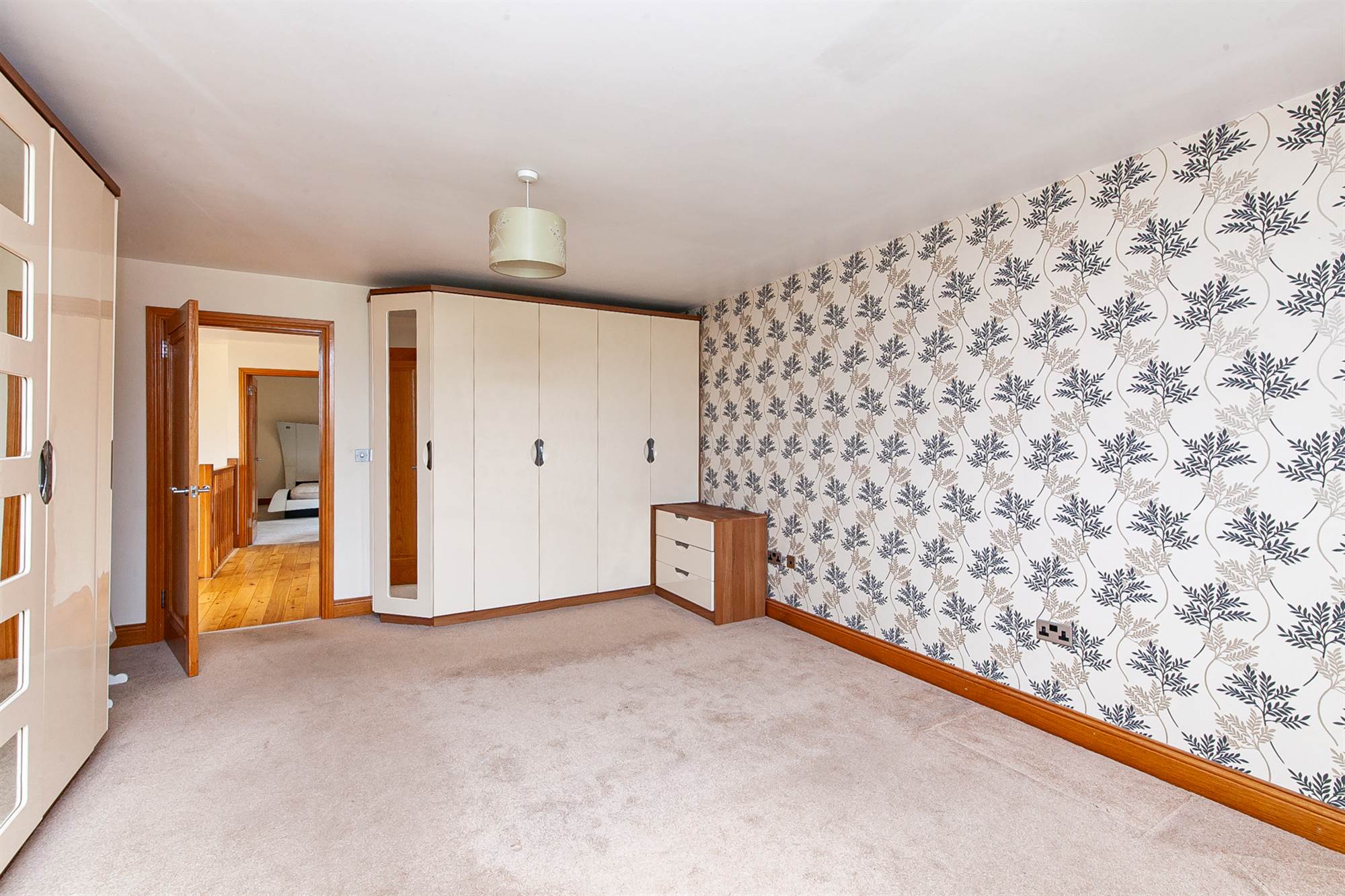 With views to side across mature grounds to Belfast Harbour and Belfast, range of bedroom furniture including extensive range of built-in robes.