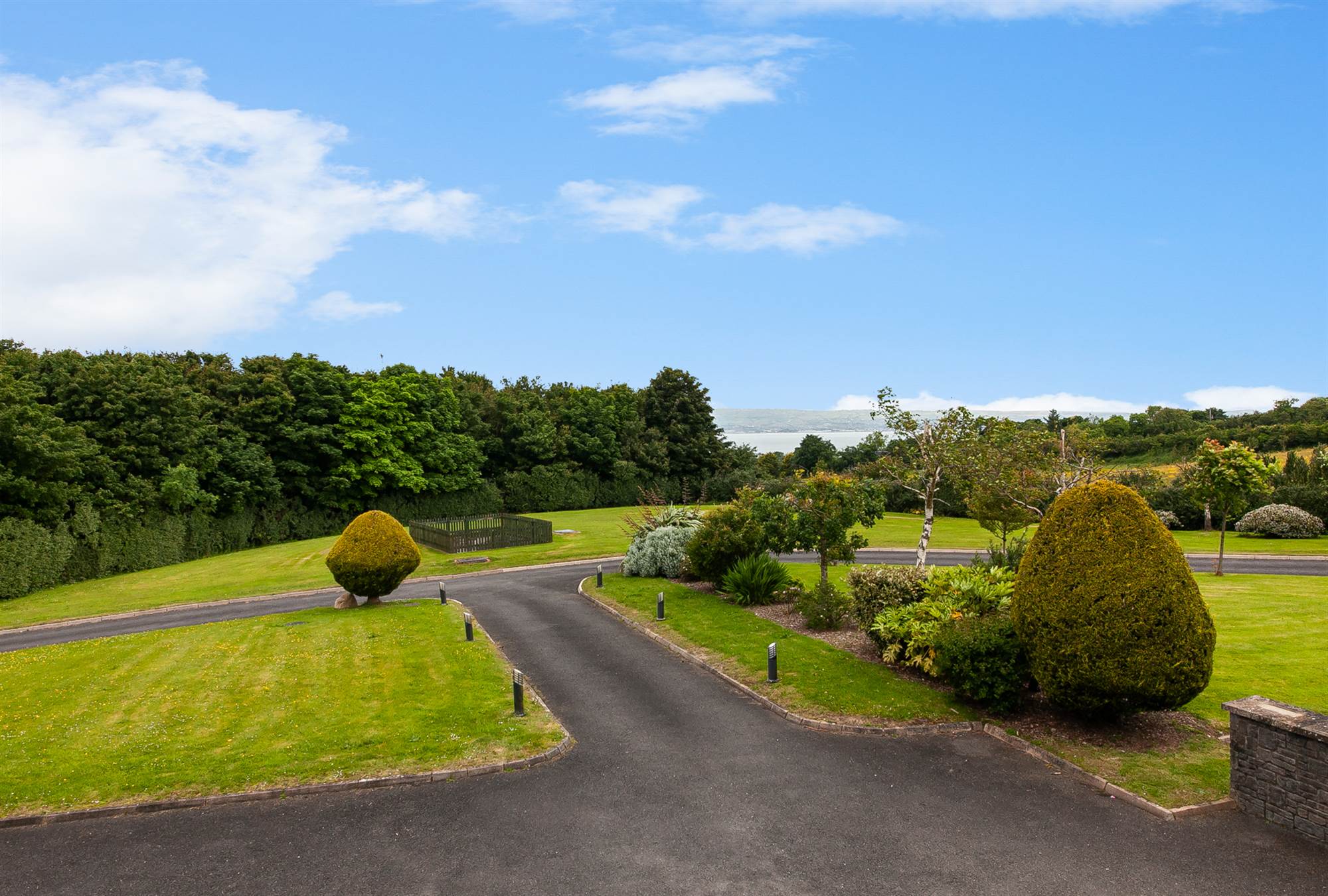 Approached via a communal driveway to 12F on right hand side, tarmac driveway with ample parking to front and side, paved patio areas to front and side, mature communal gardens laid in lawns, mature shrubs and planting, outdoor lighting.