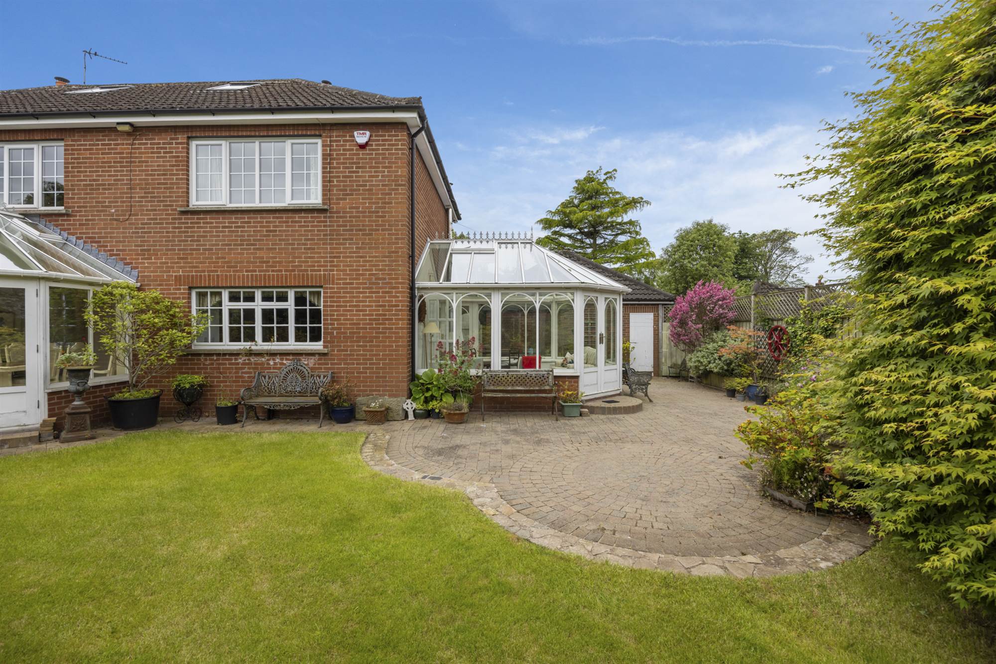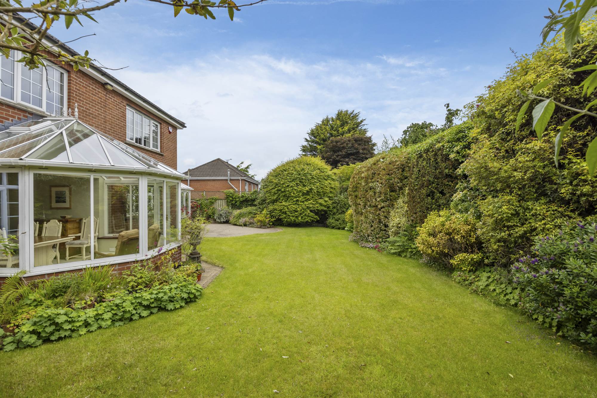Externally there are mature landscaped gardens laid in lawns, and a paved patio area orientated to capture the afternoon and evening sun. To the front is a large tarmac driveway with ample parking and turning space with access to the large double garage. The property benefits from oil fired central heating and double glazed windows.