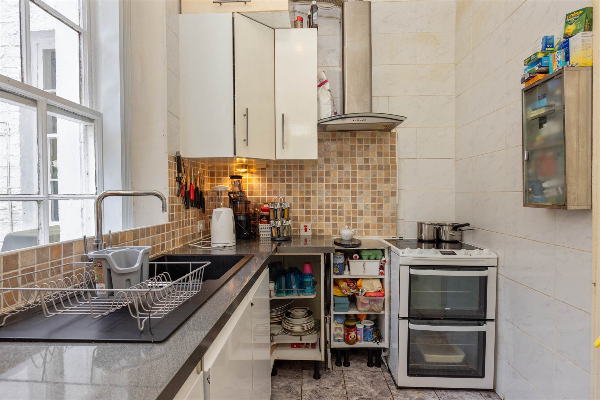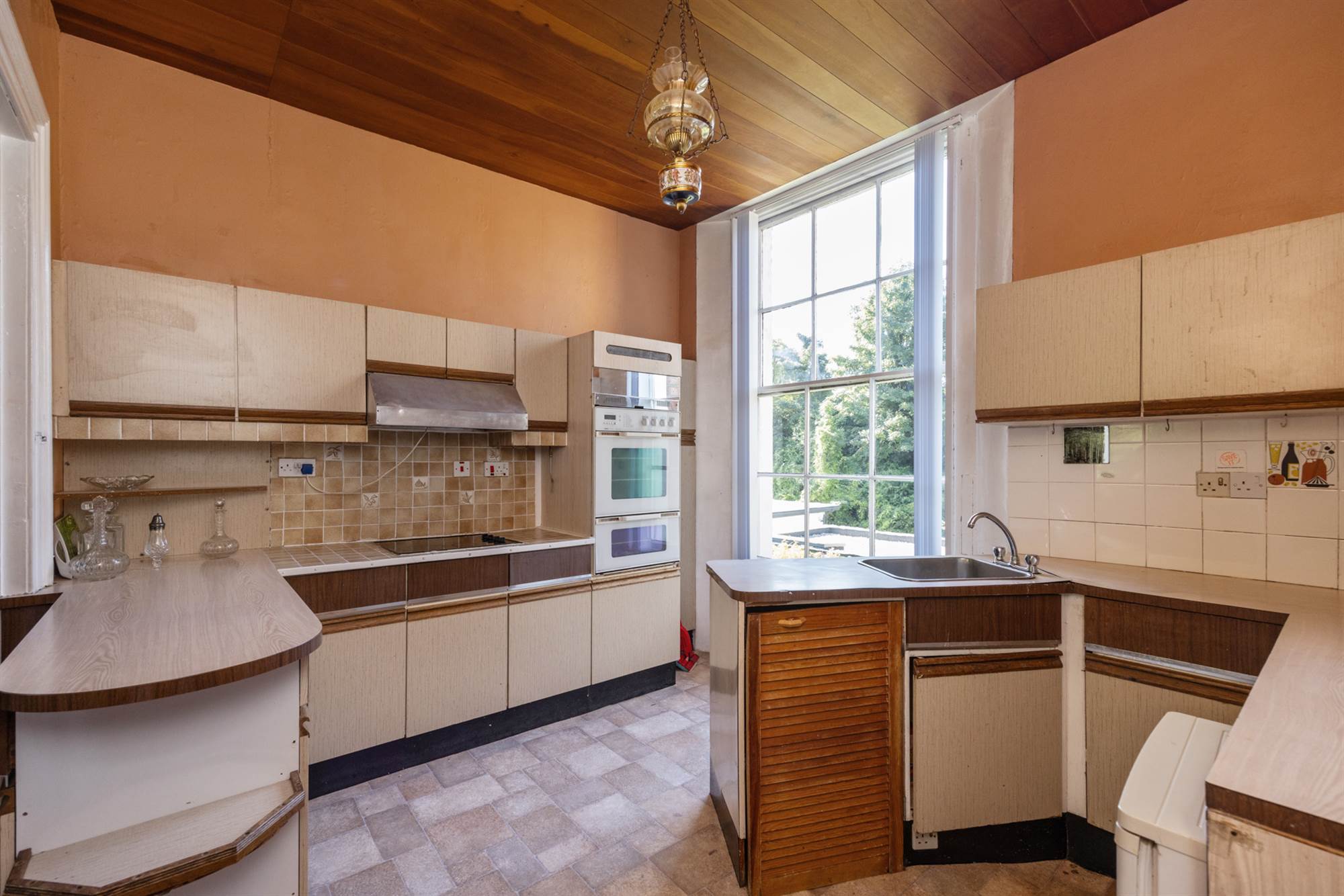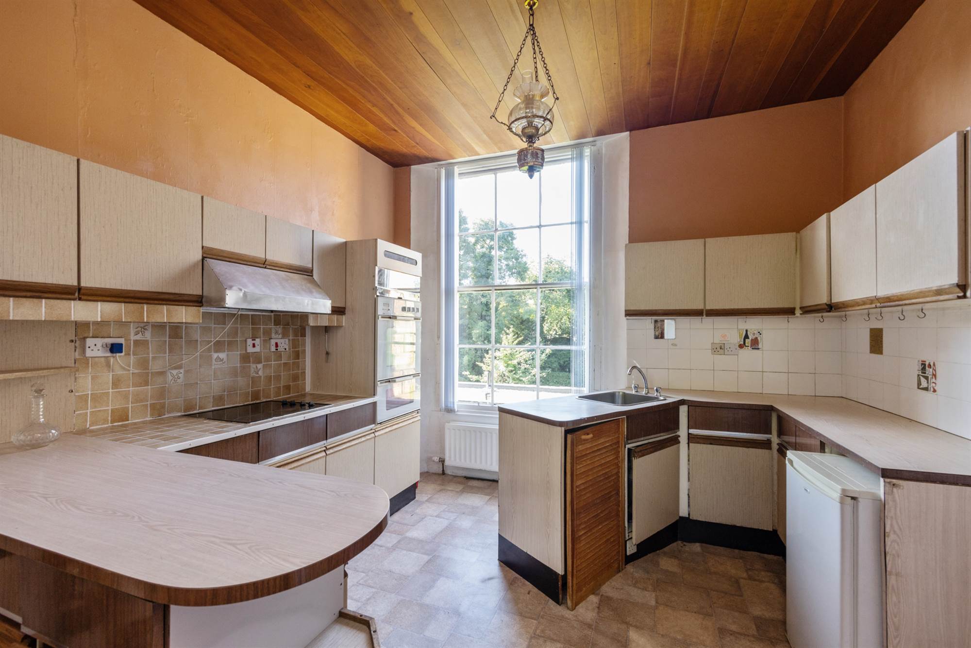 Velux window, feature arched window with views to Belfast Lough. Belfast sink. Gas boiler.