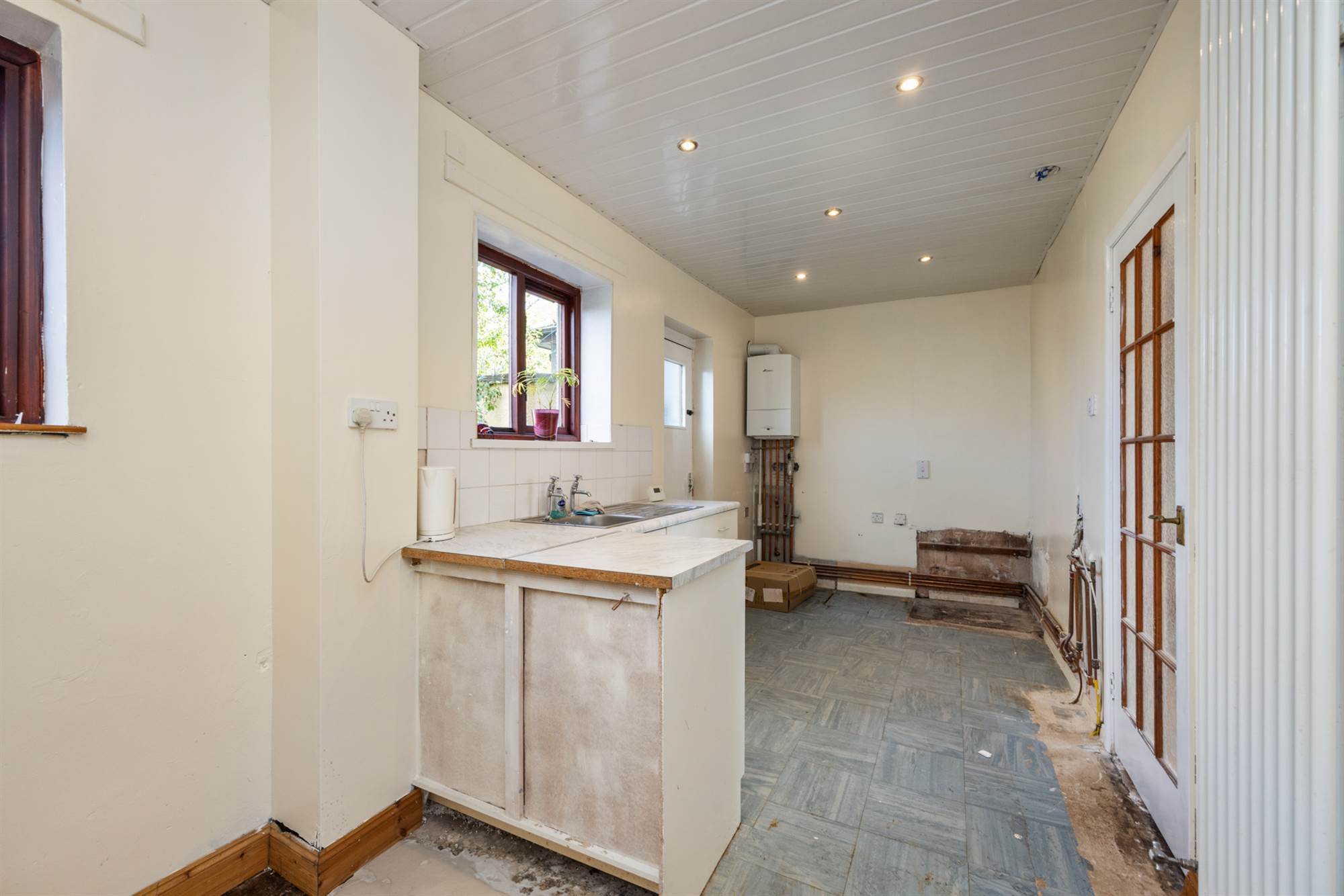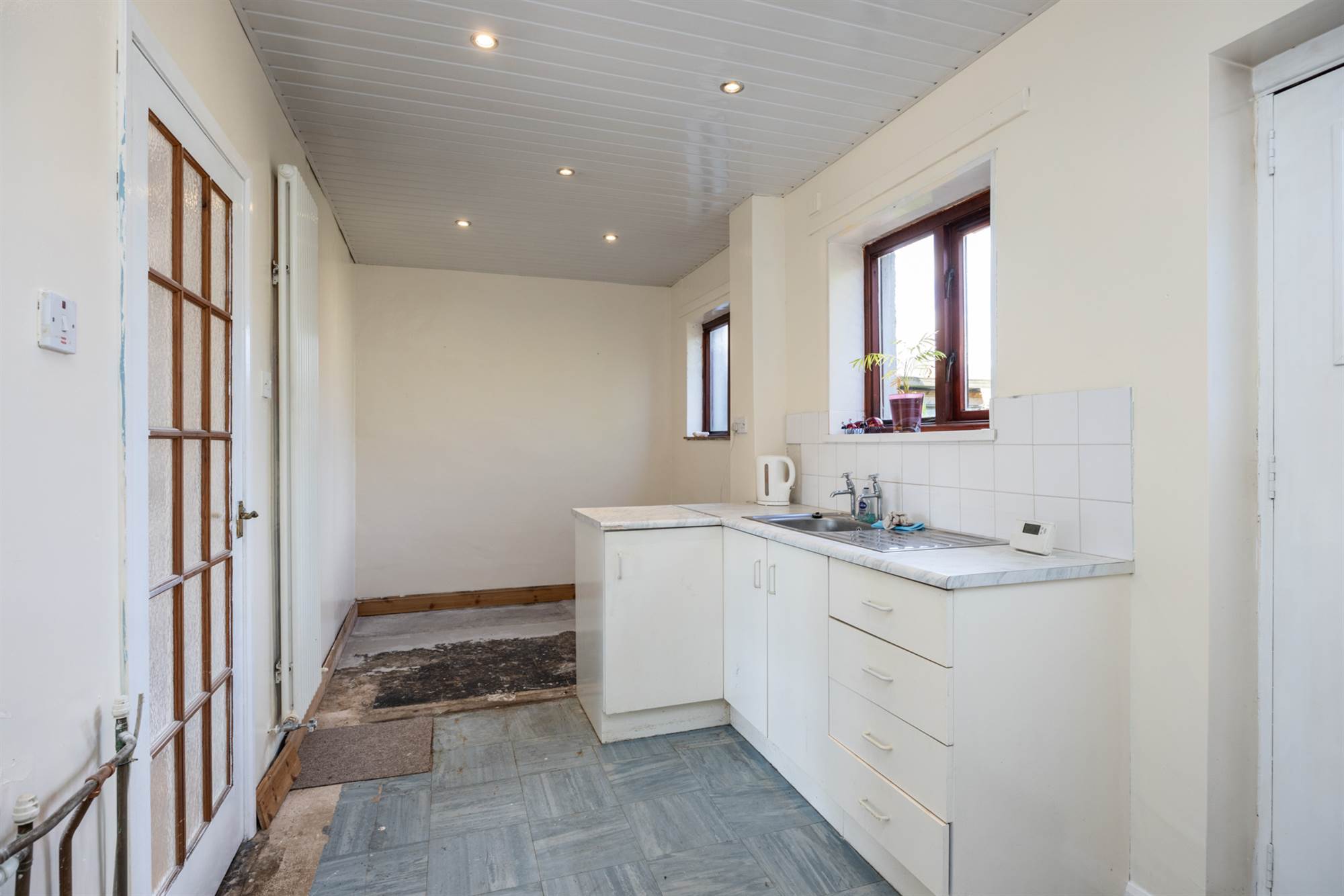 Comprises of low level units, stainless steel sink unit wwith mixer taps, casual dining space, access to rear.