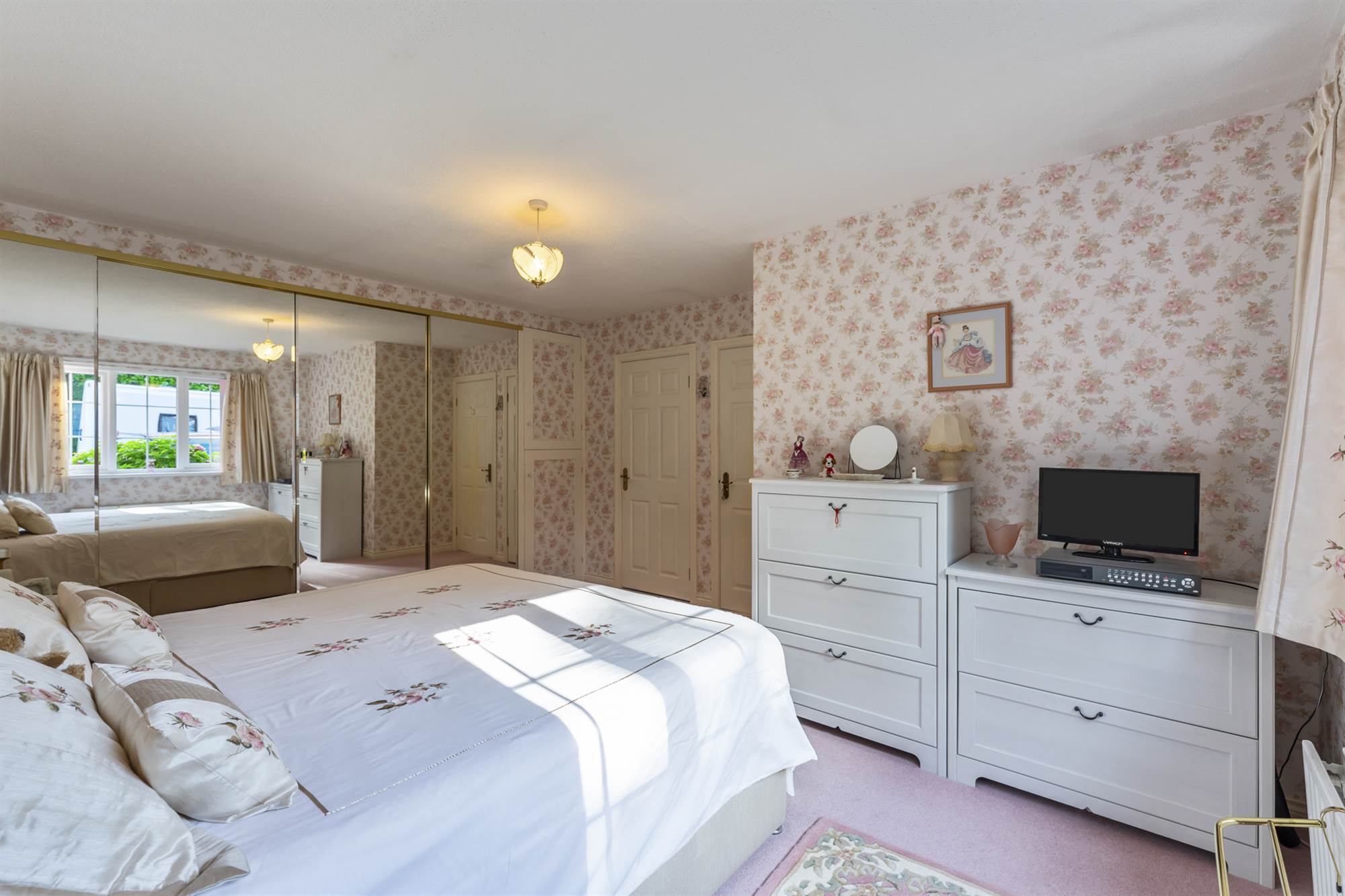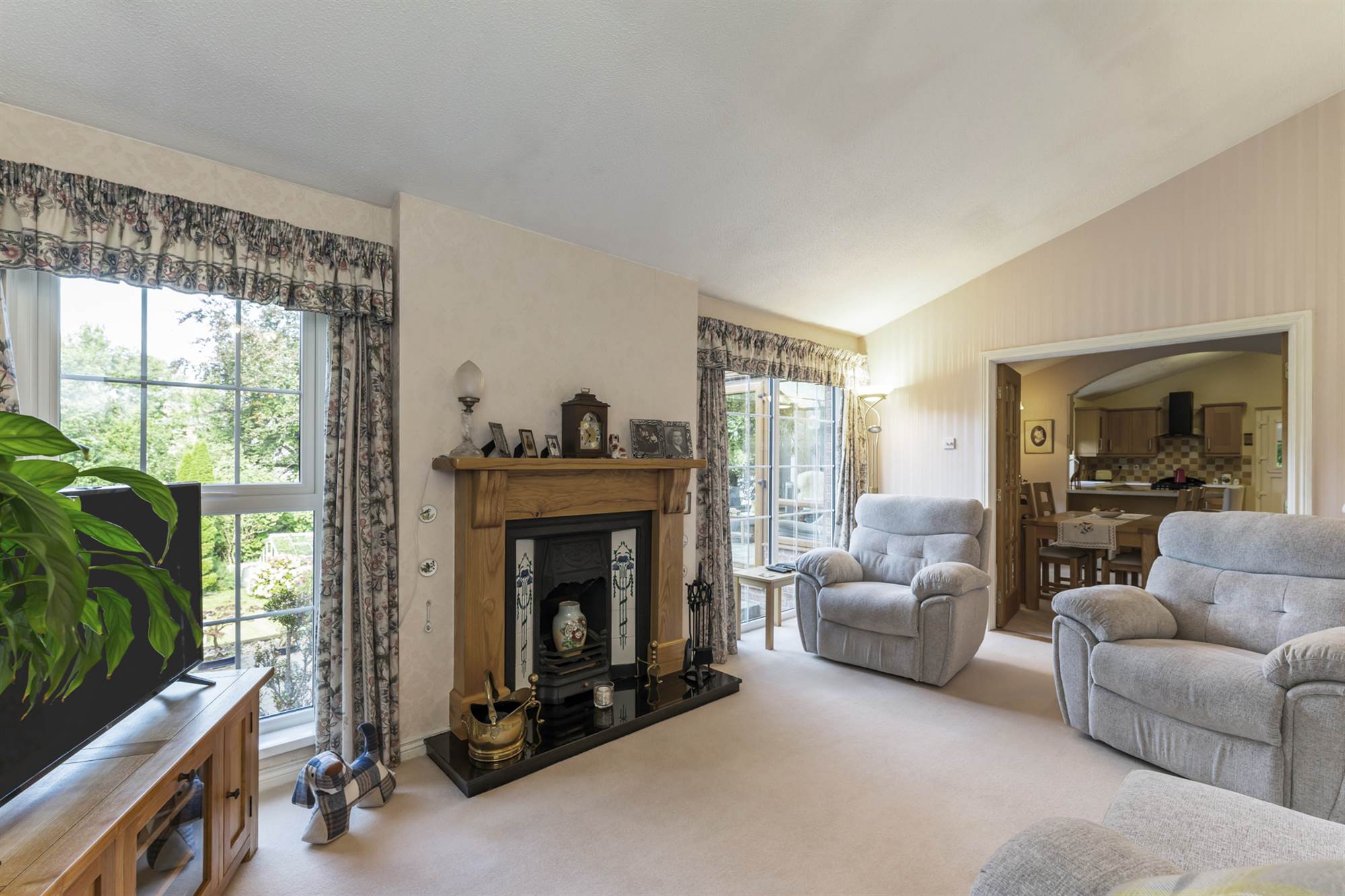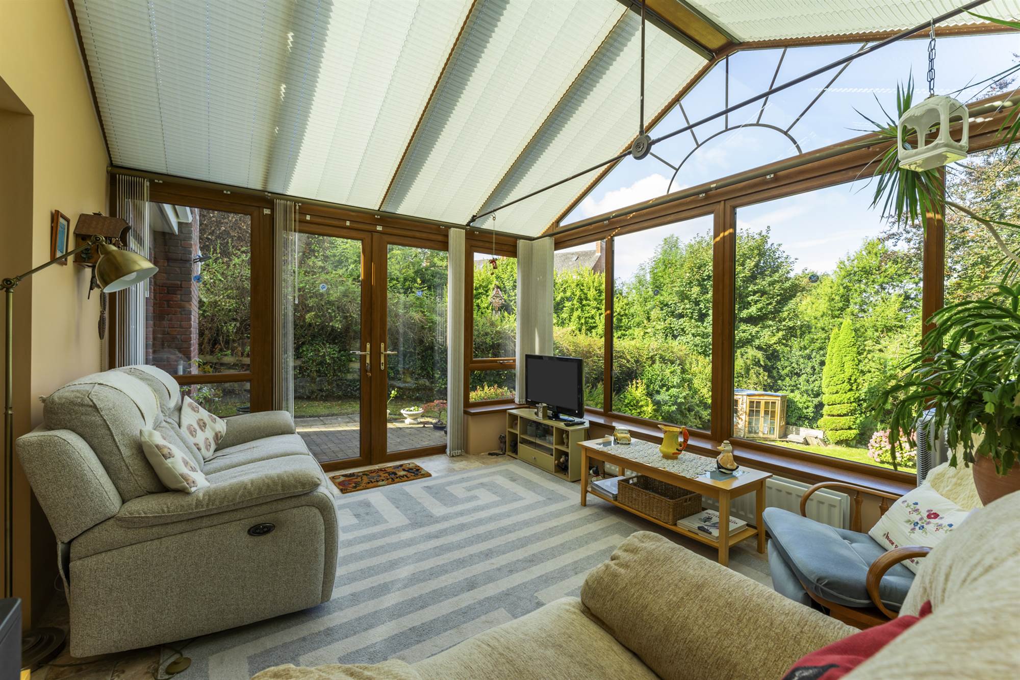 Attractive outlook to surrounding gardens. Double opening patio doors to rear patio and gardens, electric blinds in glazed ceiling.