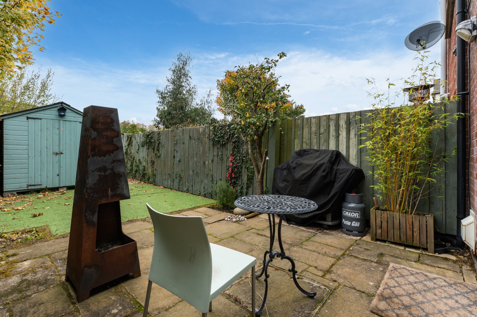 Front courtyard in loose stones. Fully enclosed South facing rear garden in artificial grass with paved patio area.