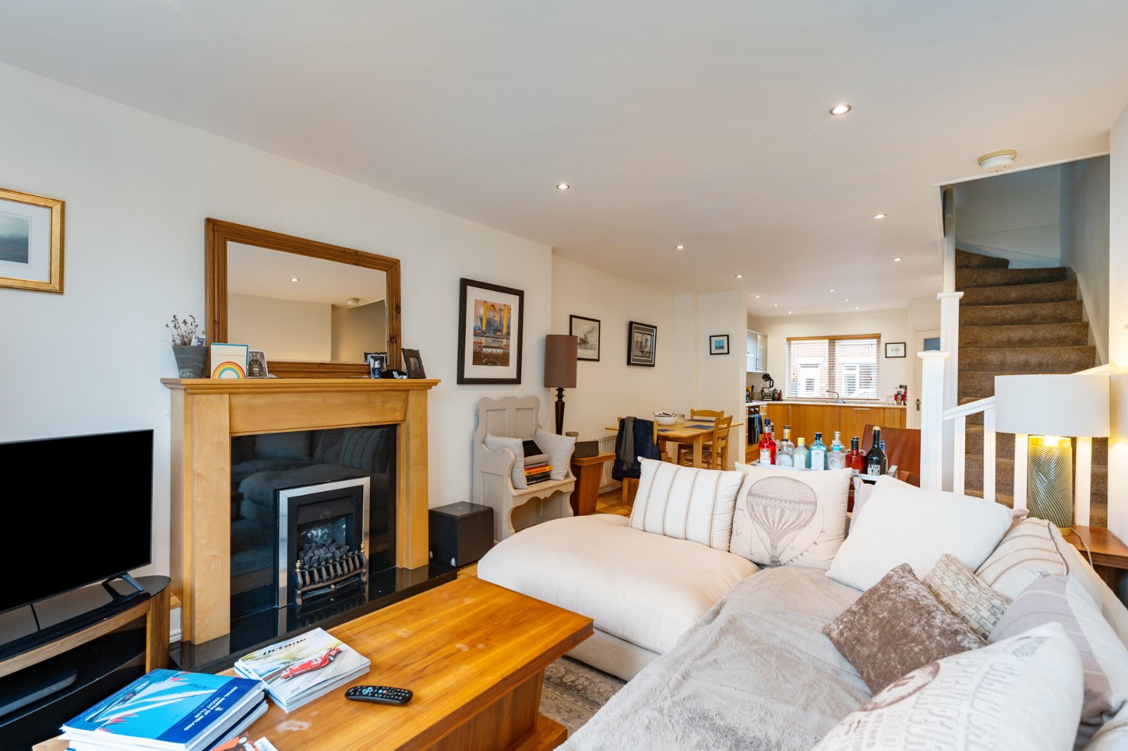 Kitchen with a range of high and low level units, laminate work surfaces, single drainer stainless steel 1 1/4 bowl sink unit, integrated electric under oven, 4 ring Smeg hob, integrated Smeg dishwasher, space for fridge freezer, partly tiled walls, low voltage spotlights, solid wood floor, built in storage cupboard under stairs. Living area with solid wood floor, oak fireplace surround with granite inset and hearth, hardwood double glazed sliding doors to patio and garden.