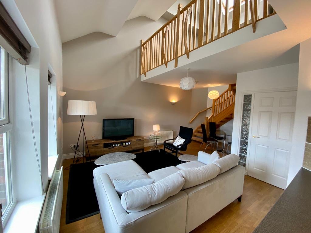 Internally the property has superb accommodation over two levels including a large open plan living space with fitted kitchen and excellent range of integrated appliances. There is space for a large dining table for 6-8 people and from here there is an open staircase to the first floor mezzanine level and could be utilised as an additional living space or third bedroom. In addition there are a further two good sized bedrooms, principal bedroom with French doors to Juliet balcony and ensuite shower room as well as a main bathroom.