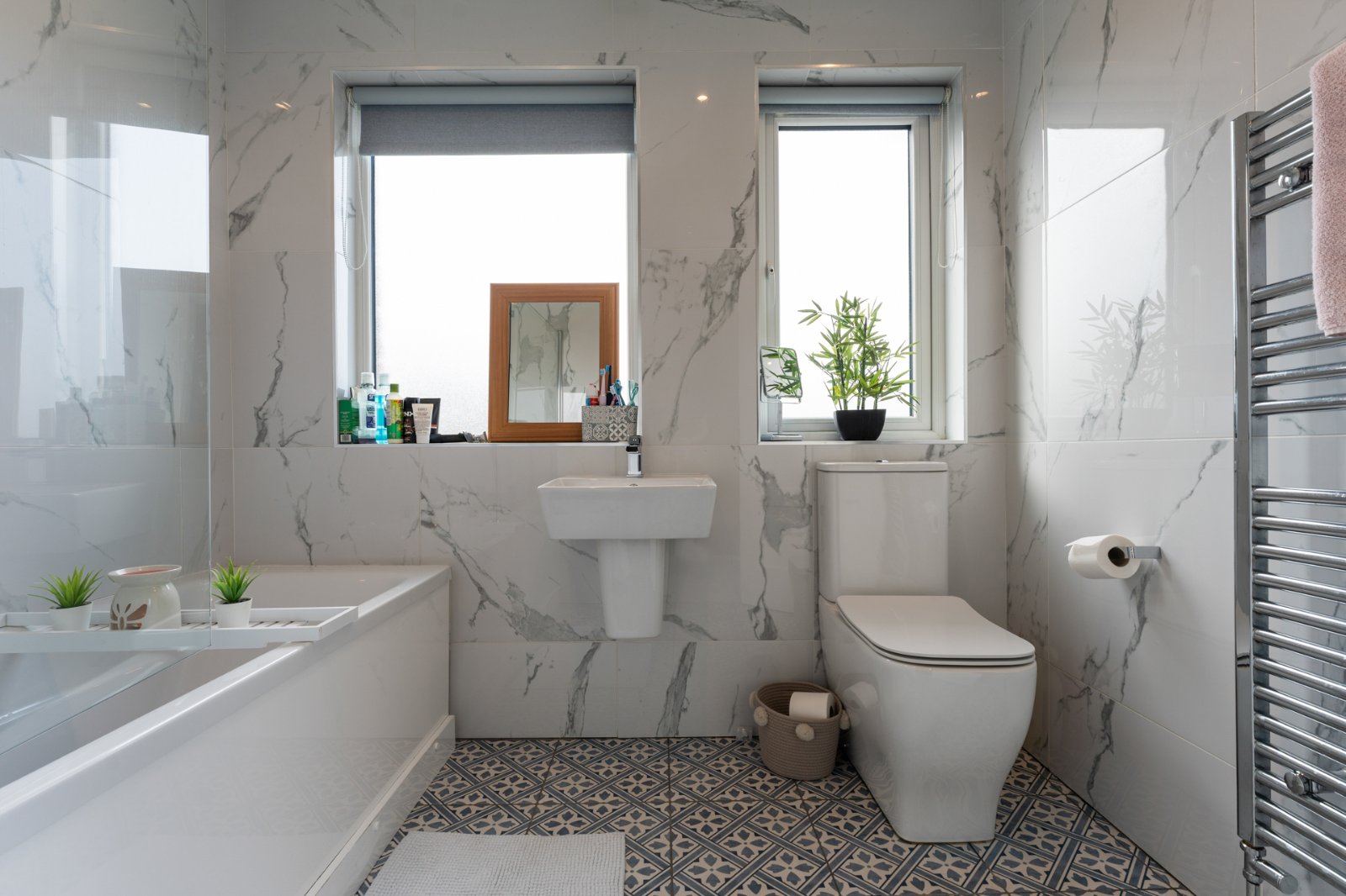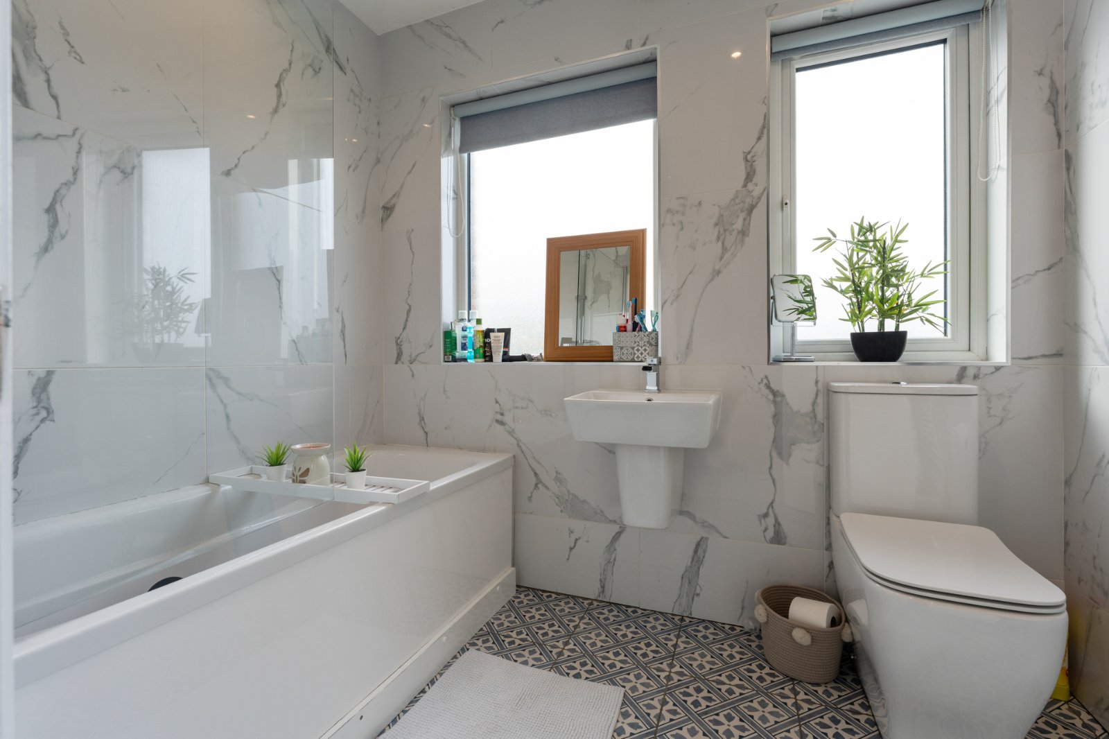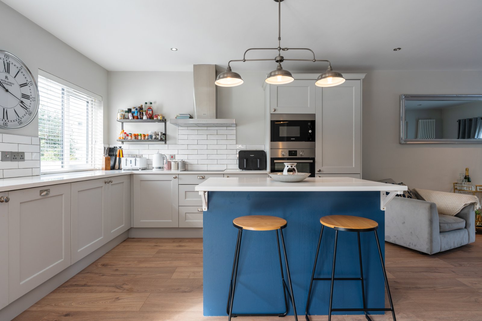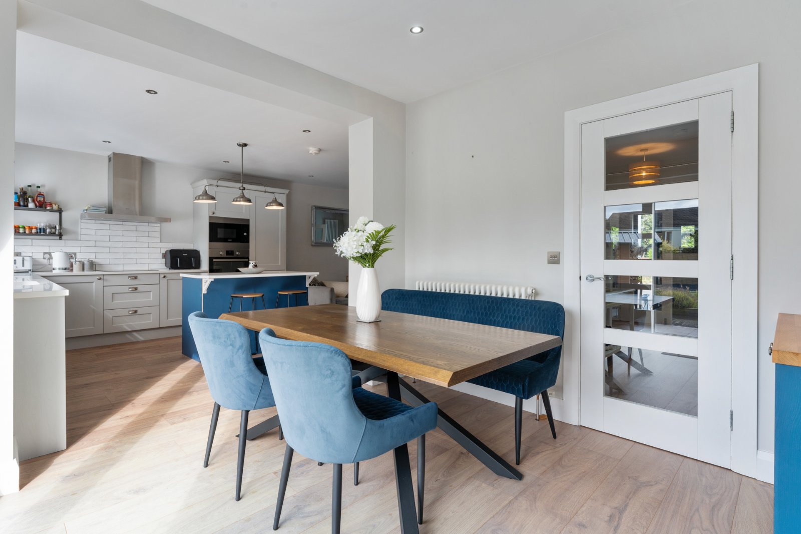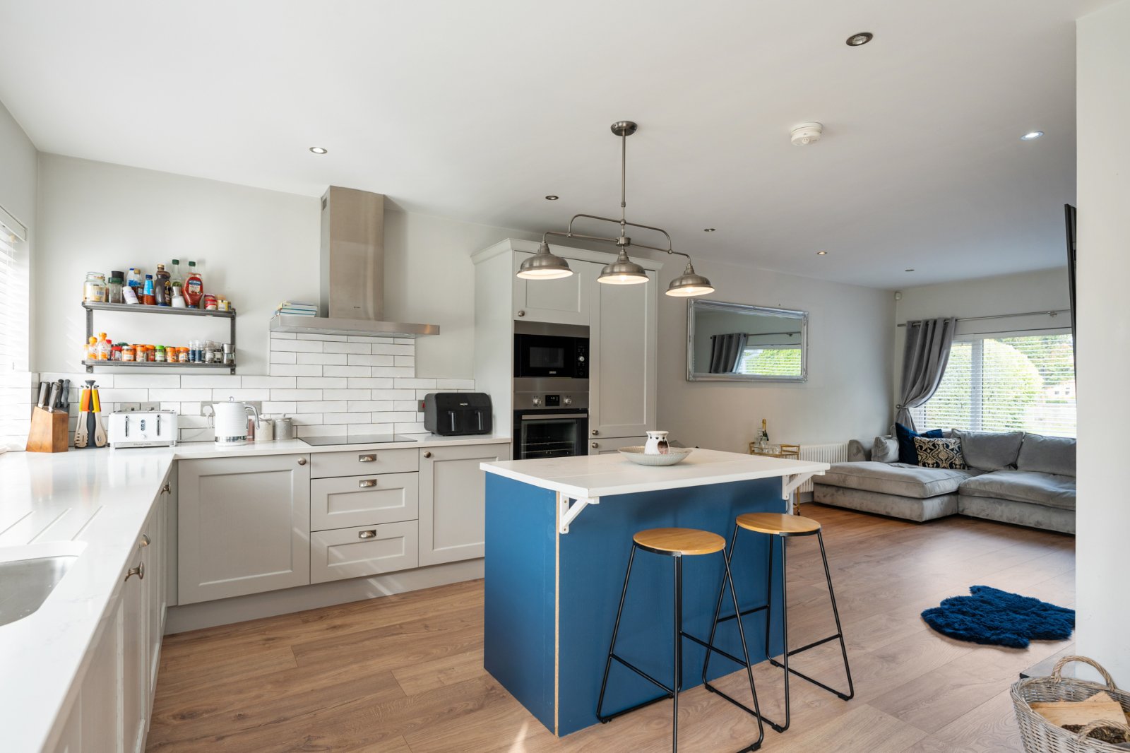 Upstairs boasts three generous bedrooms, including a master with ensuite, plus a luxury family bathroom.
