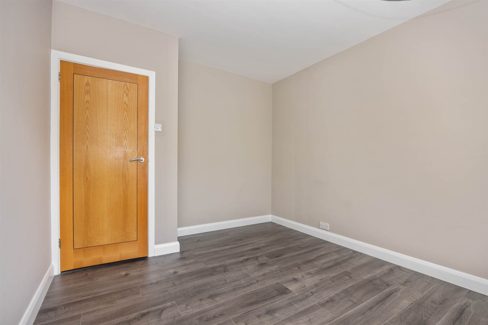 (into wardrobe recess) Grey ash effect laminate flooring