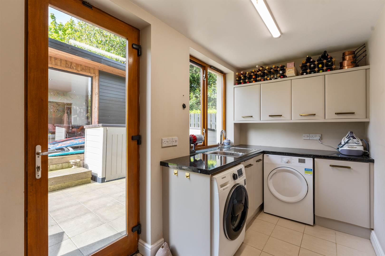 Weathered grey ash laminate flooring, recessed lighting, power, sliding double glazed uPVC doors to garden.CAT5, cabling, under floor heating. Pin hole exterior lighting.