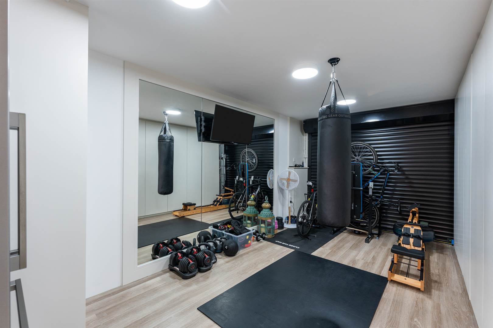 Including extensive range of floor to ceiling built-in cupboards, laminate flooring, mirror wall, facility for TV. Light, power, roller door. Concealed gas fired central heating boiler.
