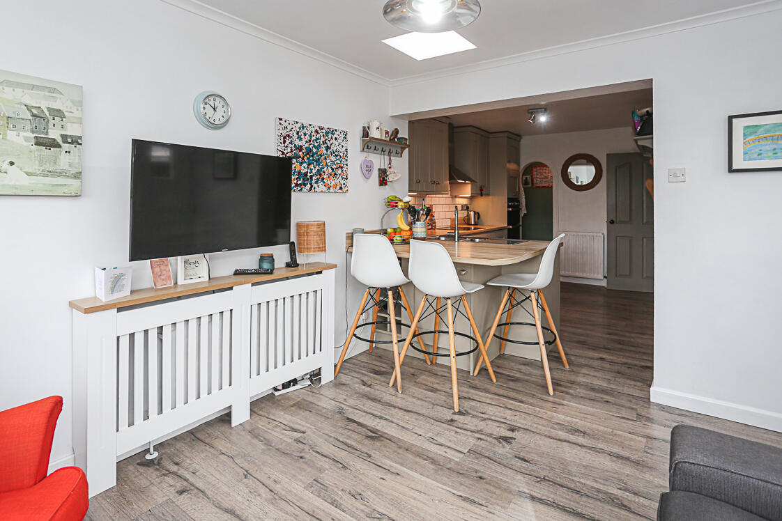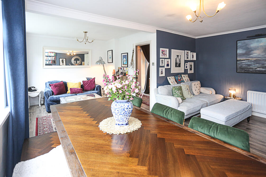 Spacious lounge and dining area with dual aspect windows