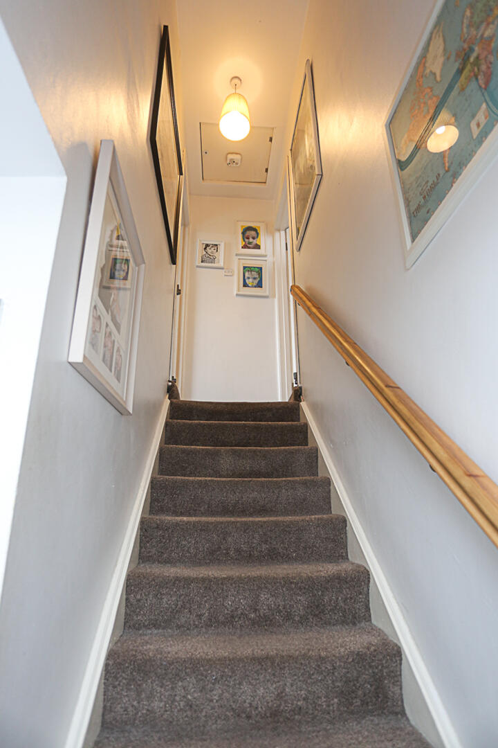 Upstairs, three well-proportioned bedrooms offer flexible accommodation, with the principal bedroom taking full advantage of the elevated position and stunning outlook. The first-floor landing also provides access to roofspace storage, further adding to the home´s practicality.