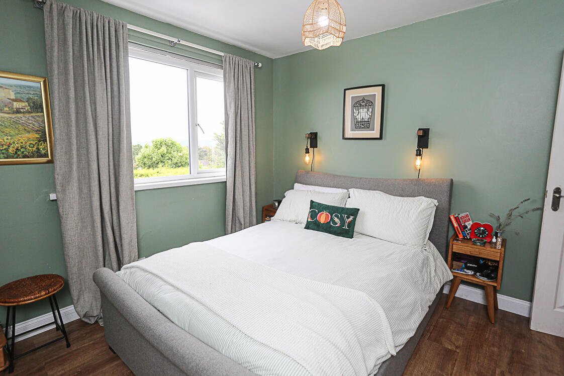 Principal bedroom with elevated views across the Antrim Hills to Belfast Harbour