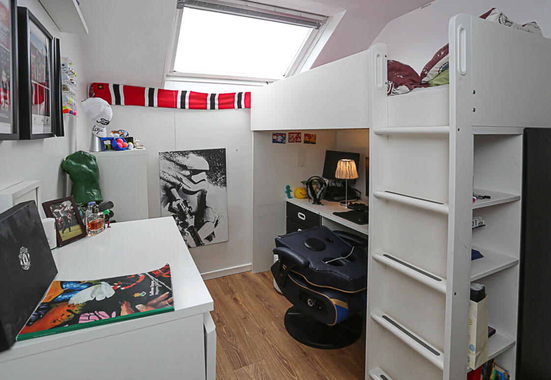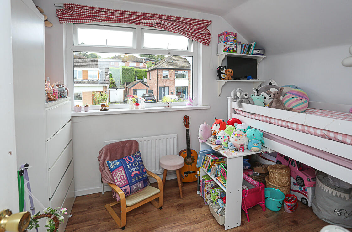Storage into eaves and outlook to rear with mature outlook and views across the Antrim Hills to Belfast Harbour.