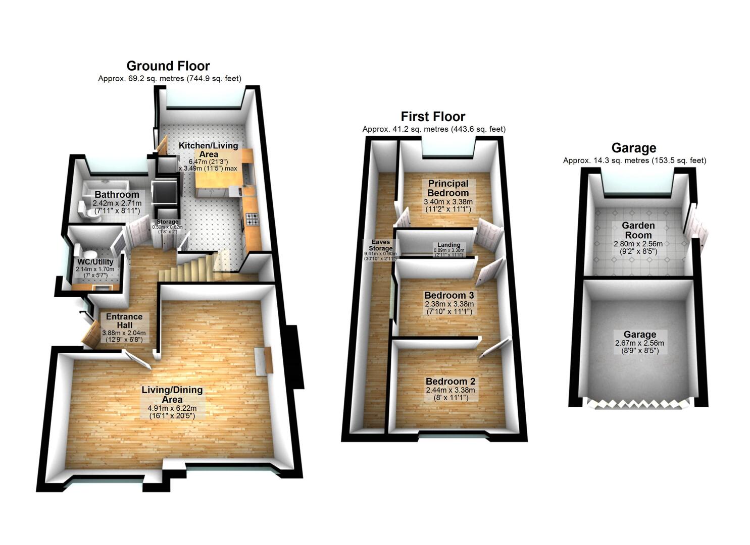 The ground floor is thoughtfully laid out to maximise both practicality and flow. A welcoming reception hall leads through to a spacious lounge and dining area, which benefits from dual aspect windows that flood the room with natural light. The kitchen is positioned to the rear and opens directly to the garden, making it an ideal space for both everyday living and entertaining. A separate utility area and a contemporary bathroom complete the ground floor, providing both functionality and style.