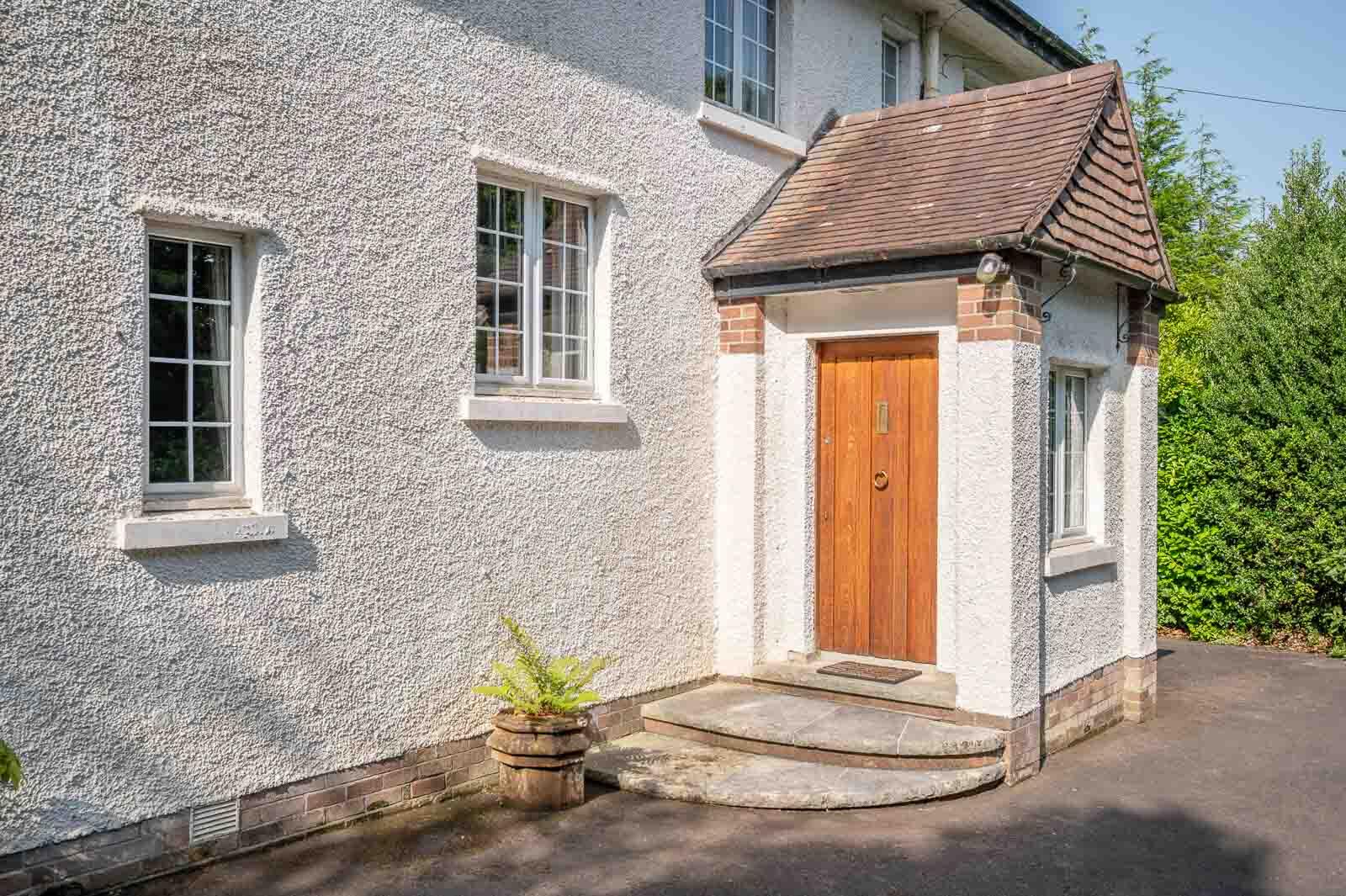 Glazed panelled door to the smallest bedroom which would also make an ideal study with mature outlook to driveway and front gardens.