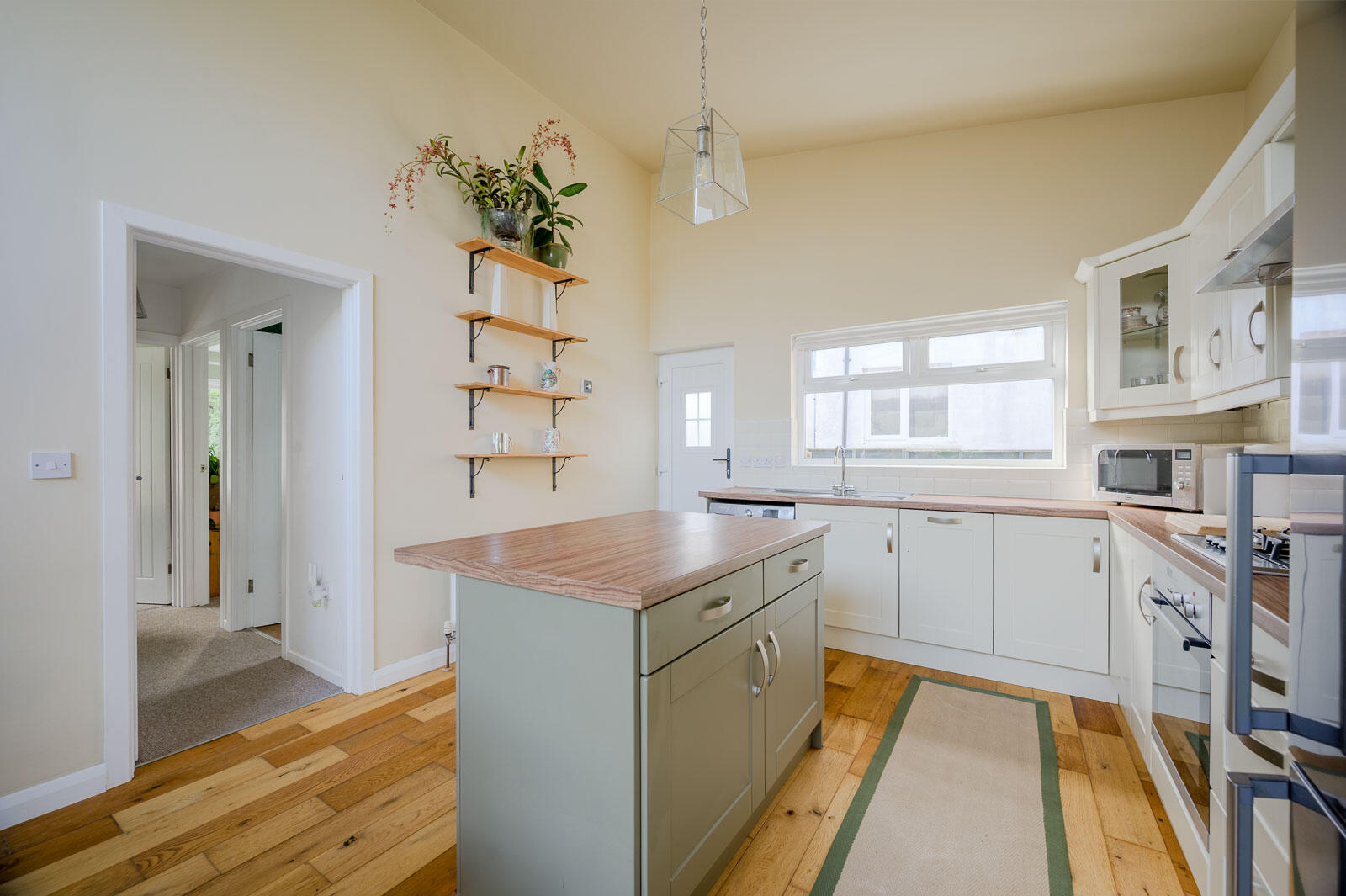 The property offers a well-balanced layout with bright, welcoming living areas and generous bedroom accommodation. The spacious lounge, with vaulted ceilings, solid oak flooring and cosy wood burning stove, flows seamlessly through to an open-plan kitchen and dining space, designed for modern living and entertaining. Large windows and glazed doors allow natural light to fill the home, creating a sense of space and connection between indoors and out. Three comfortable bedrooms and a well-appointed bathroom complete the layout, while practical features such as excellent storage, and gas-fired central heating with a Worcester Bosch combi boiler ensure everyday comfort and ease. The property benefits from fully modernised insulation, with Kingspan roof insulation above the beautiful, vaulted ceilings, ensuring maximum heat efficiency.