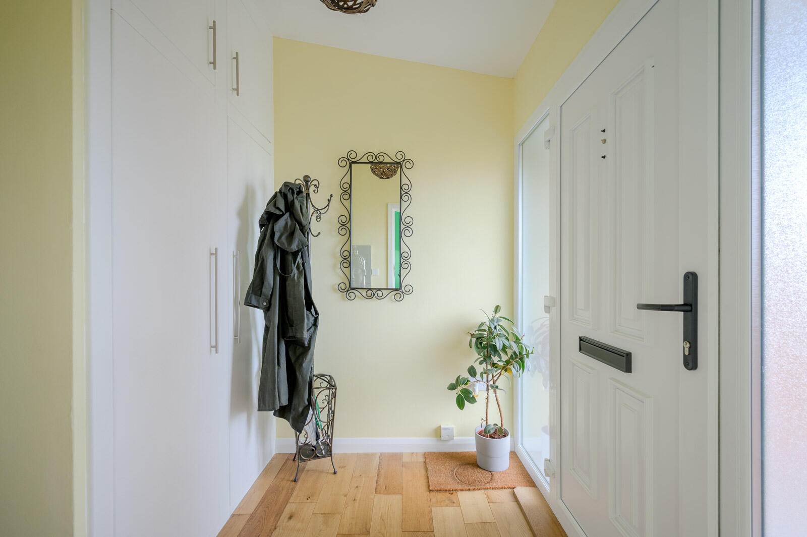 Vaulted ceiling. Solid oak flooring. Large cupboard with ample space for storage and cloaks.