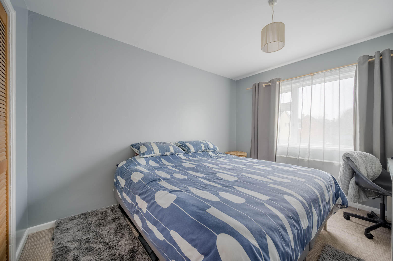 Outlook to rear, built-in robes.