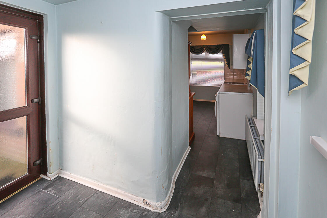 With concealed electrical fuse box, bevelled inner door to lounge.