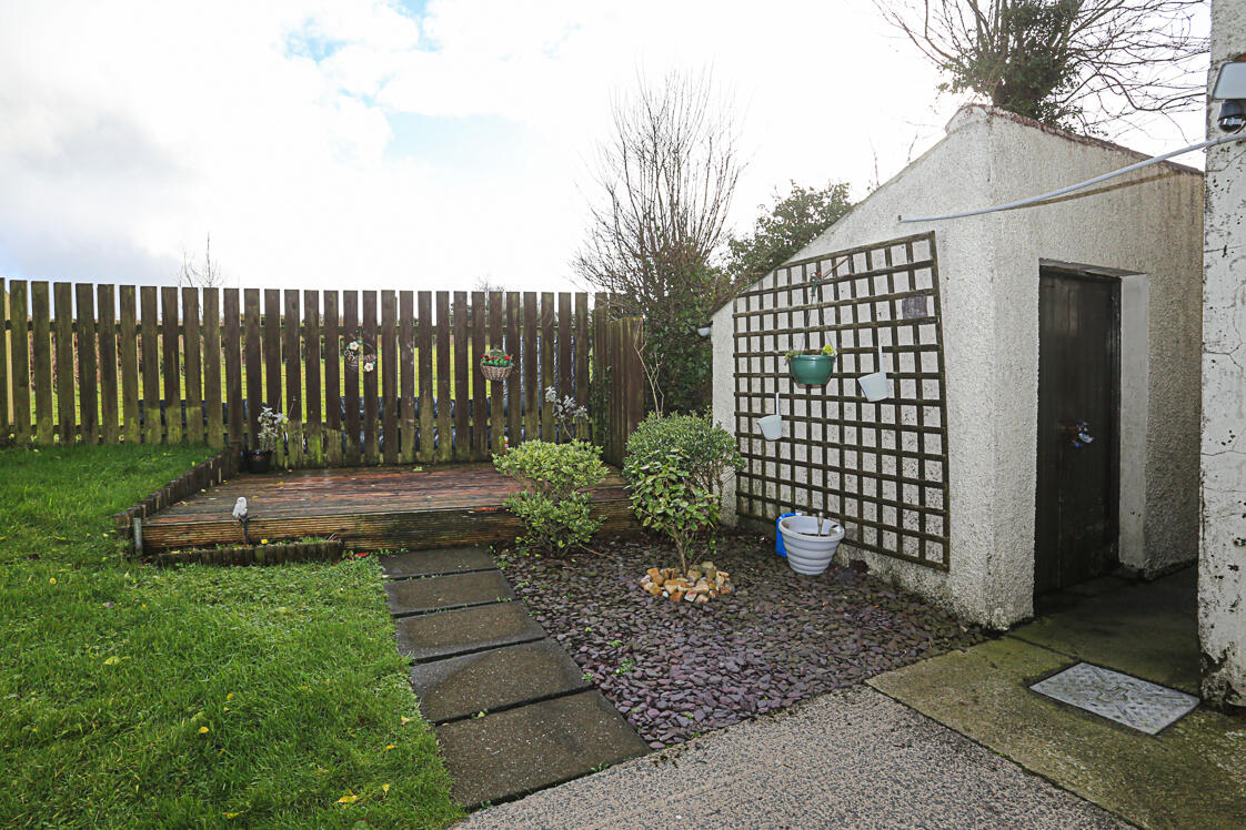 Concrete driveway with ample parking, mature front gardens laid in lawns, side gardens laid in lawns, outhouse to rear with light and power, oil storage tank behind, triple glazed uPVC windows to front, double glazed to side and rear.