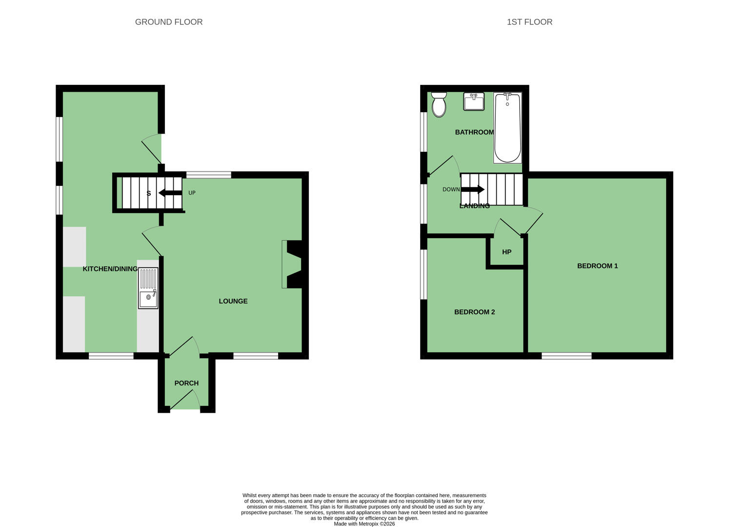 On the first floor, there are two bedrooms, both enjoying elevated outlooks across rolling countryside, and a bathroom fitted with a white suite. The landing area further benefits from built-in storage and a feature window with stunning countryside views.