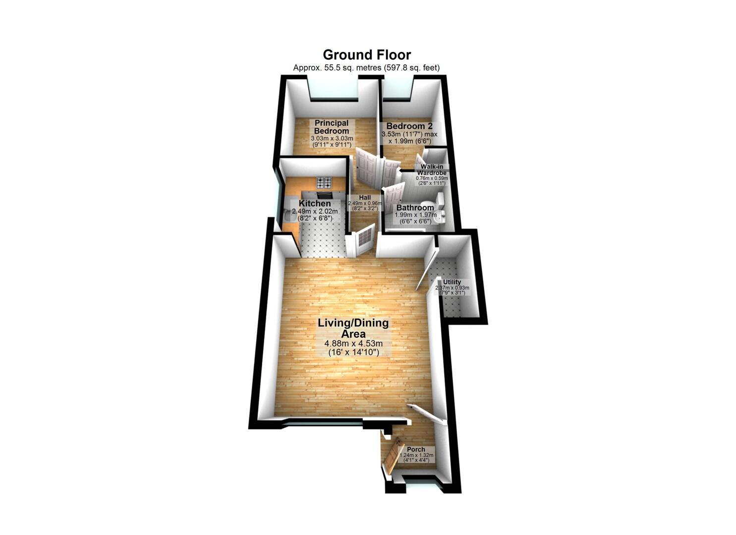 The kitchen is thoughtfully arranged and offers space for all essential appliances, creating a functional hub for daily living. The home includes two comfortable bedrooms and a family bathroom, providing everything needed for modern living in a compact, easy-to-maintain layout.