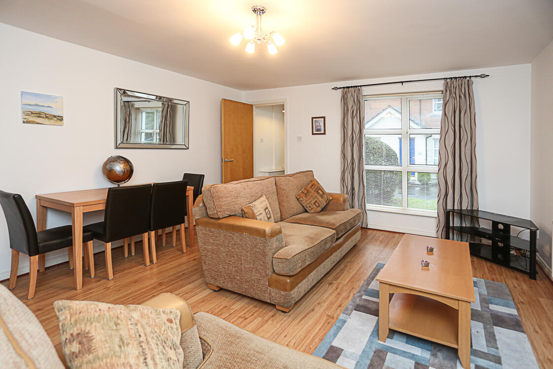 The apartment welcomes you into a bright reception area leading through to an open-plan lounge and dining space. This versatile living area provides a practical and sociable environment, ideal for relaxing or entertaining.