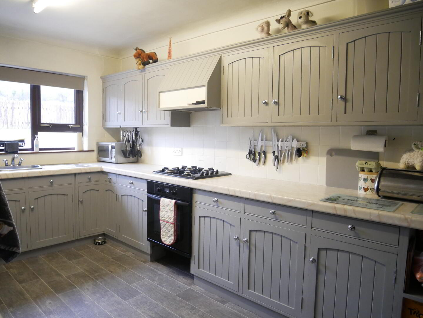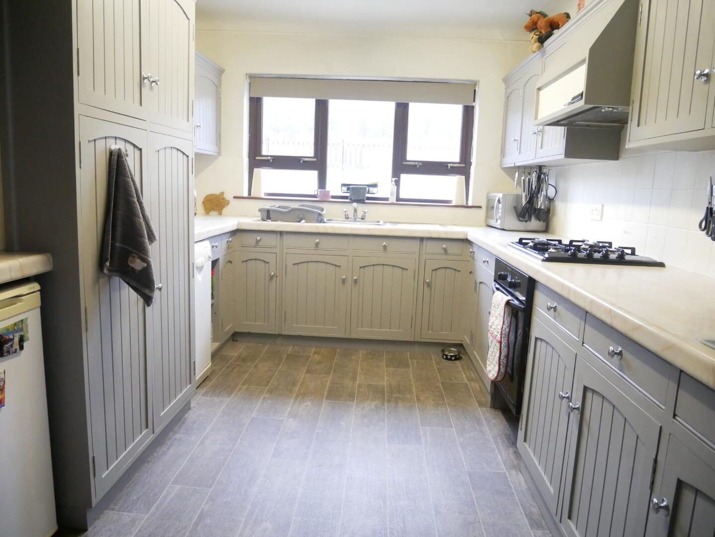 Kitchen - 15'3"!x9' Fully fitted with an extensive range of eye and low level delux units, tiled around worktops, stainless steel double drainer sink unit, built in 4 burner gas hob, electric oven, cooker, slimline dishwasher, cushion flooring.