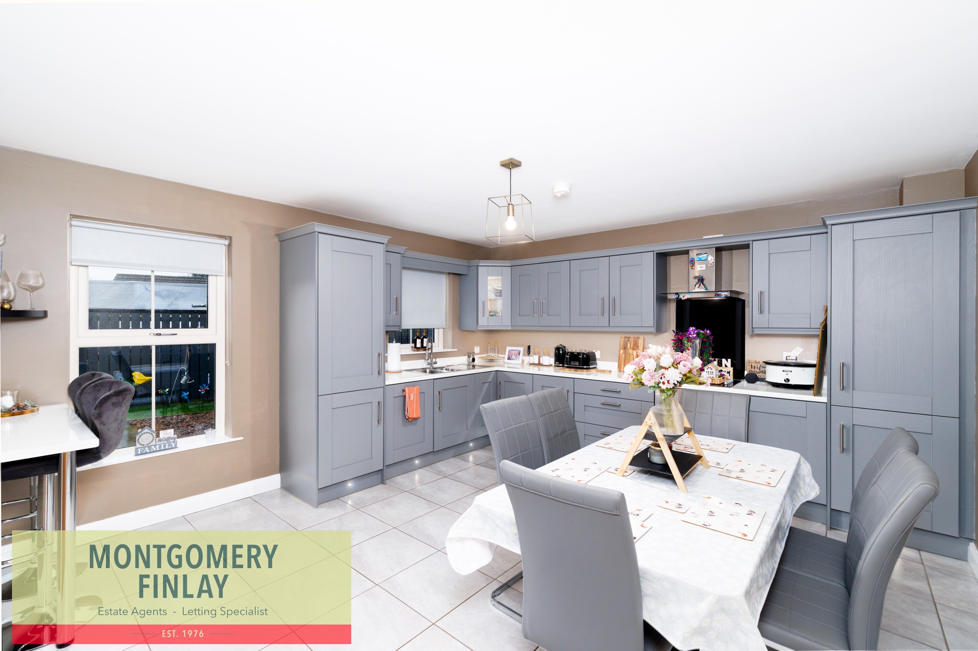 - Contemporary Kitchen/Dining Area – Fitted units, integrated appliances, breakfast bar, and tiled floor